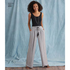 Easy to sew Women trousers with length variations are roomier at the top making them the perfect trousers to add to your summer wardrobe now. Pattern includes long trousers with a wide or narrow leg, a cropped wide leg pant, and shorts. All views have an elasticized waistband ending at the hip bone and finished off with a flat panel at front where you can add your choice of drawstring cord, tassels or a fabric tie belt.