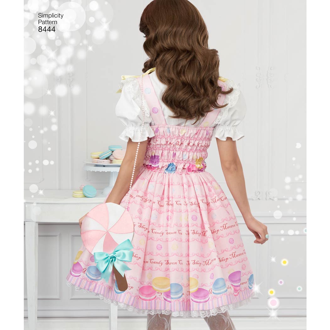 Get creative with these Lolita ruffle dresses. Perfect for your next cosplay event. Dresses feature cincher or ribbon around the waist. Add bows to achieve the look even more. Andrea Schewe Designs for Simplicity Also see accessory pattern 8443.