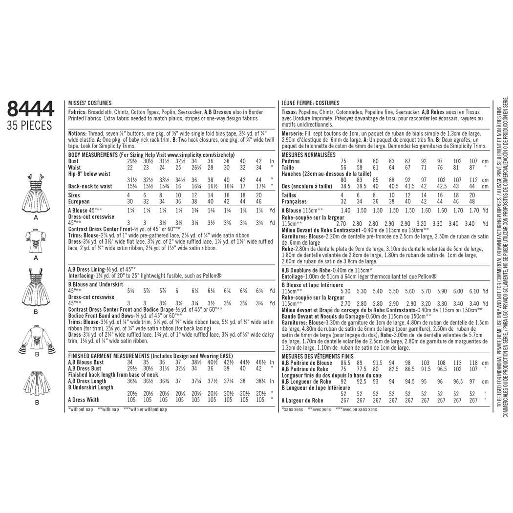 Simplicity Sewing Pattern 8444 - Women's Lolita Costume