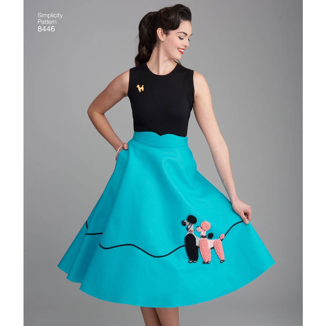 Rock the night away in a 1950's vintage skirt straight from our pattern archives. Recreate this classic circle skirt with poodle applique or detachable cummerbund. Vintage Simplicity sewing pattern.