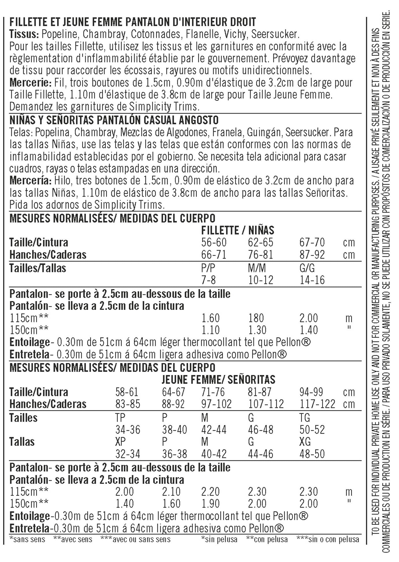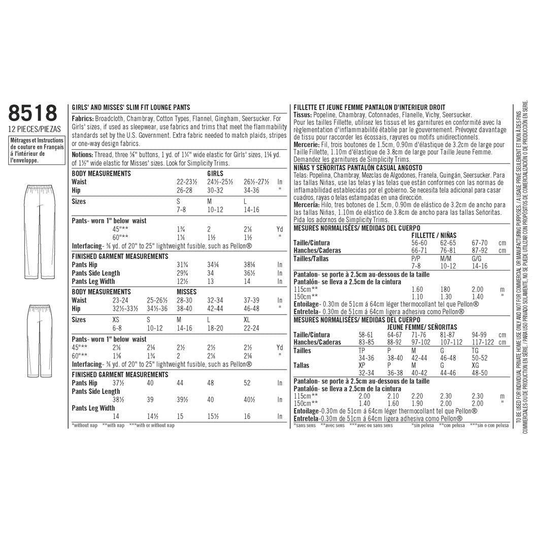 Simplicity Sewing Pattern S8518 - Girls' and Misses' Slim Fit Lounge Trousers