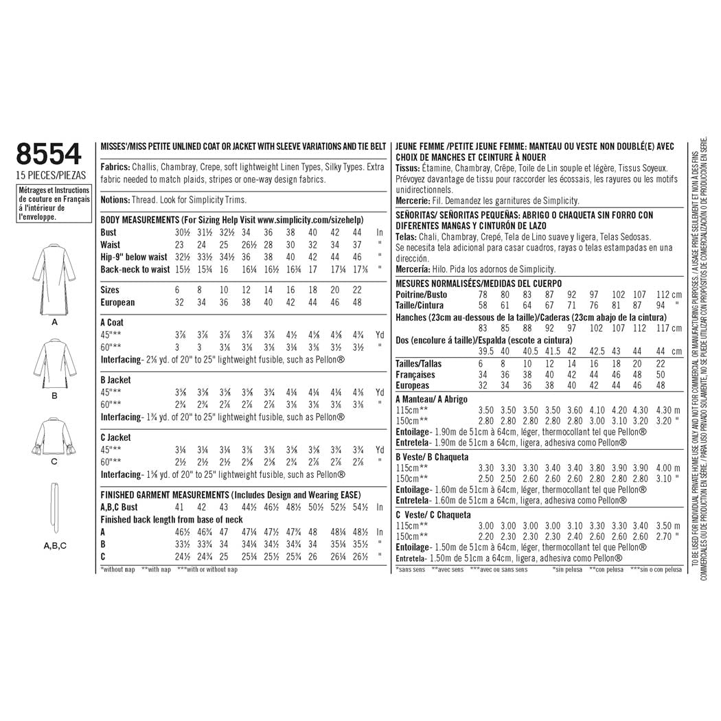 Simplicity Sewing Pattern 8554 - Women’s / Petite Women’s Coats and Jackets