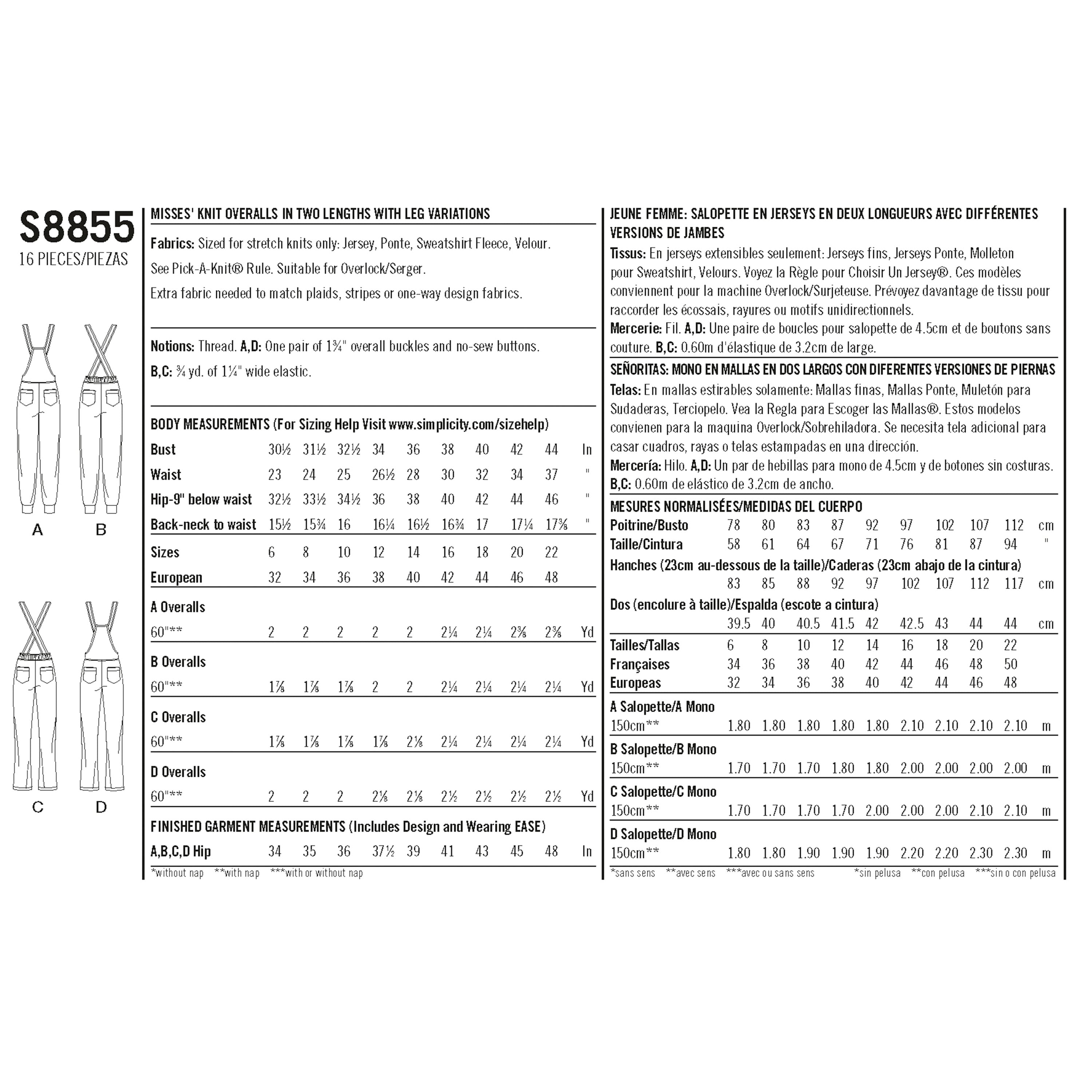 Simplicity Sewing Pattern S8855 - Misses' Knit Overalls