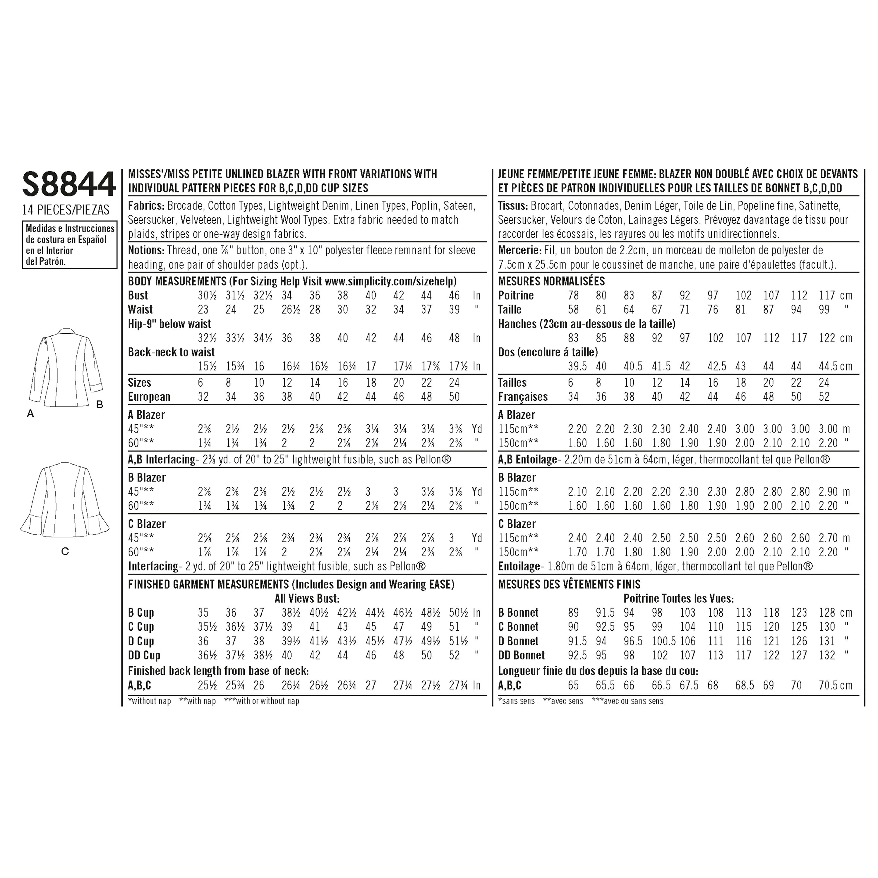 Simplicity Sewing Pattern S8844 - Misses'/ Miss Petite Unlined Blazer