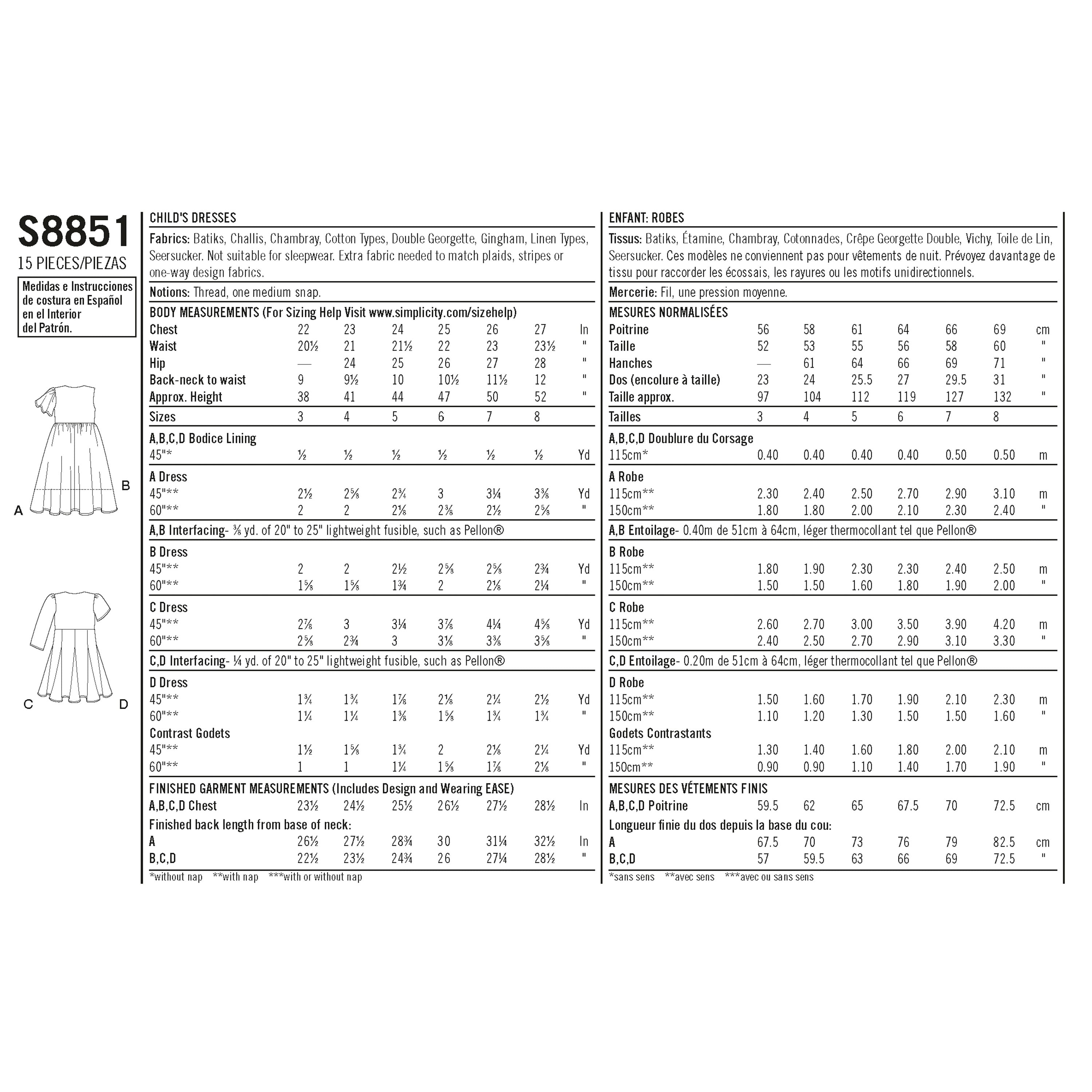 Simplicity Sewing Pattern S8851 - Child's Dresses