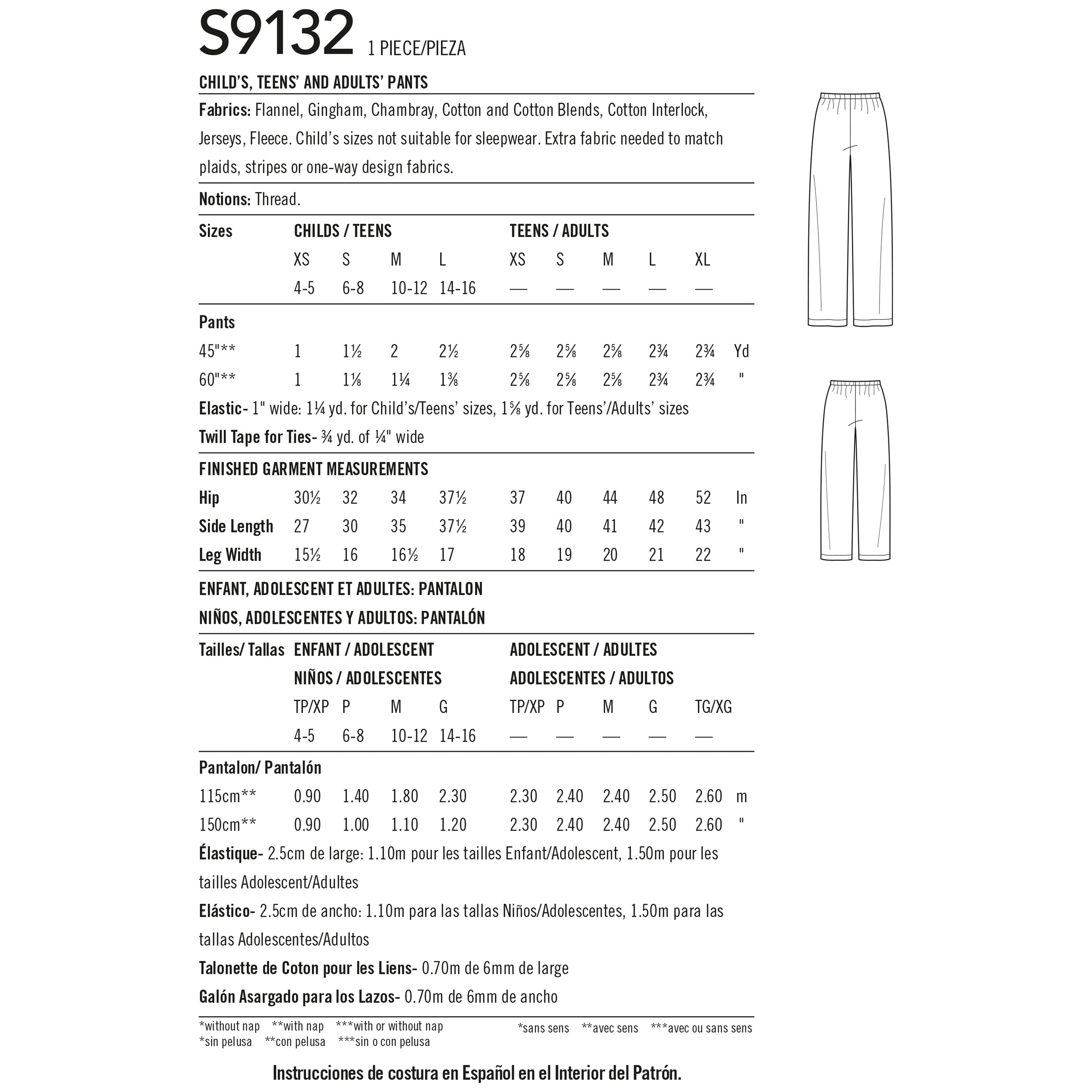 Simplicity Sewing Pattern S9132 - Unisex Sleepwear