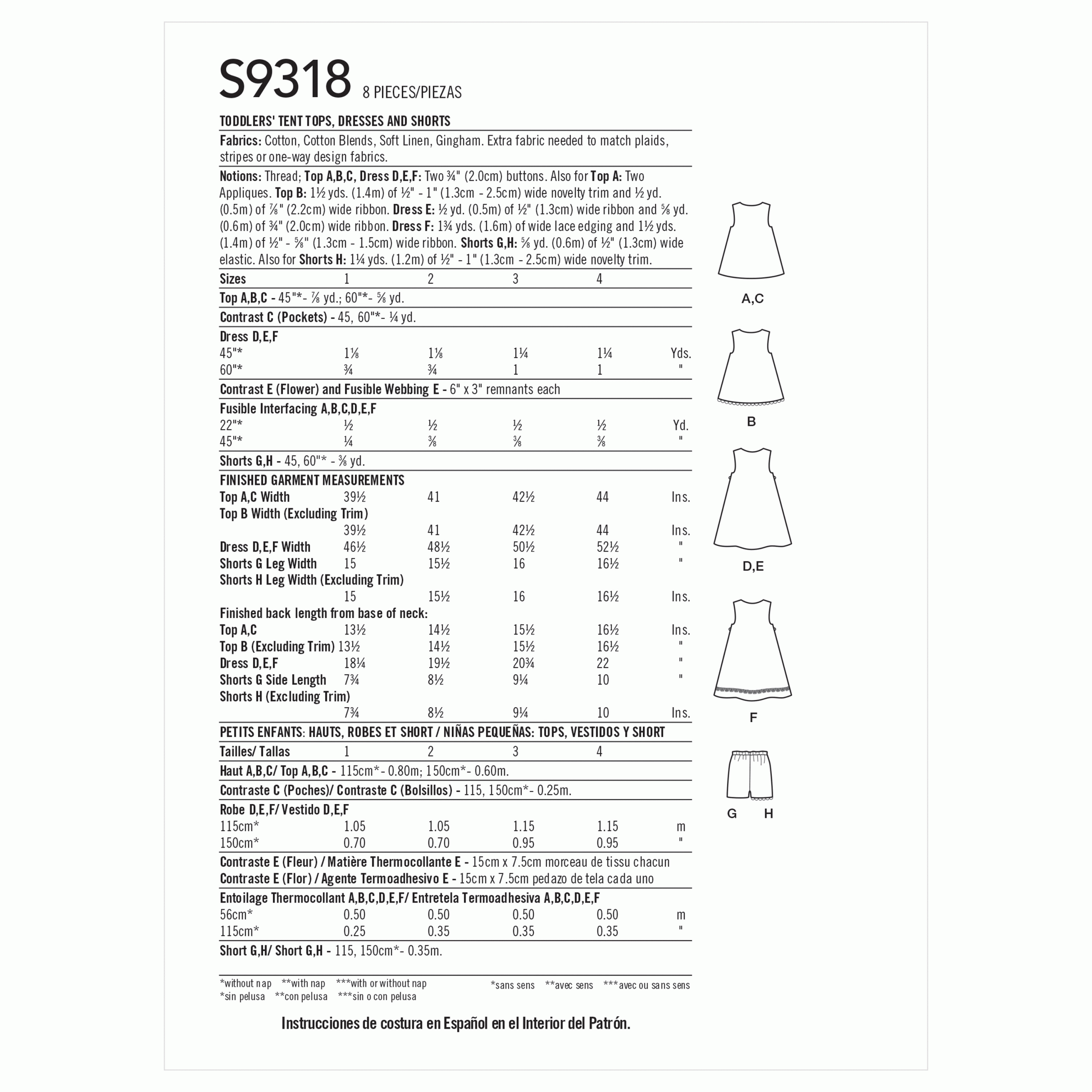 Simplicity Sewing Pattern S9318 - Toddlers' Tops, Dresses, and Shorts