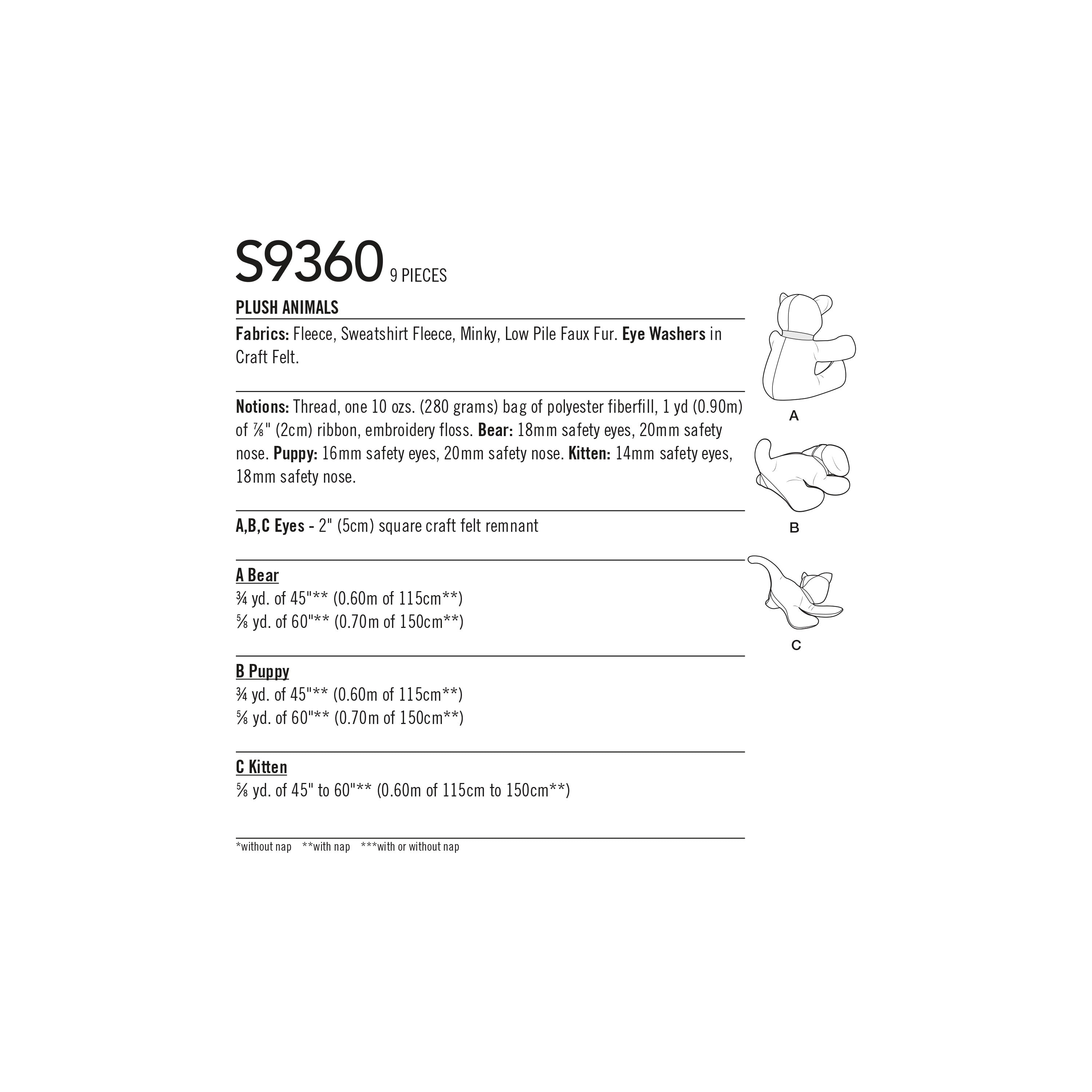 Simplicity Sewing Pattern S9360 - Plush Animals