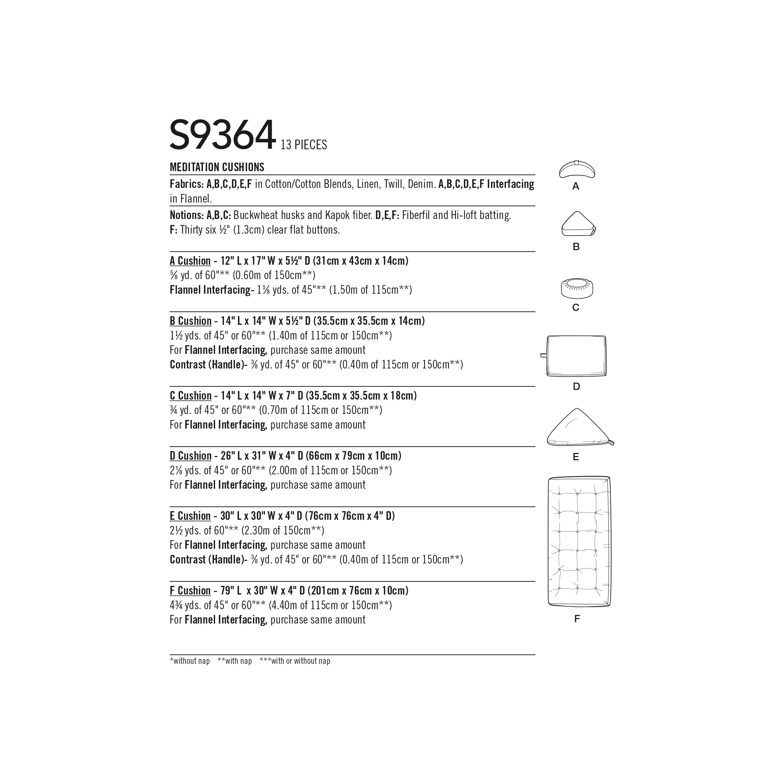 Simplicity Sewing Pattern S9364 - Meditation Cushions