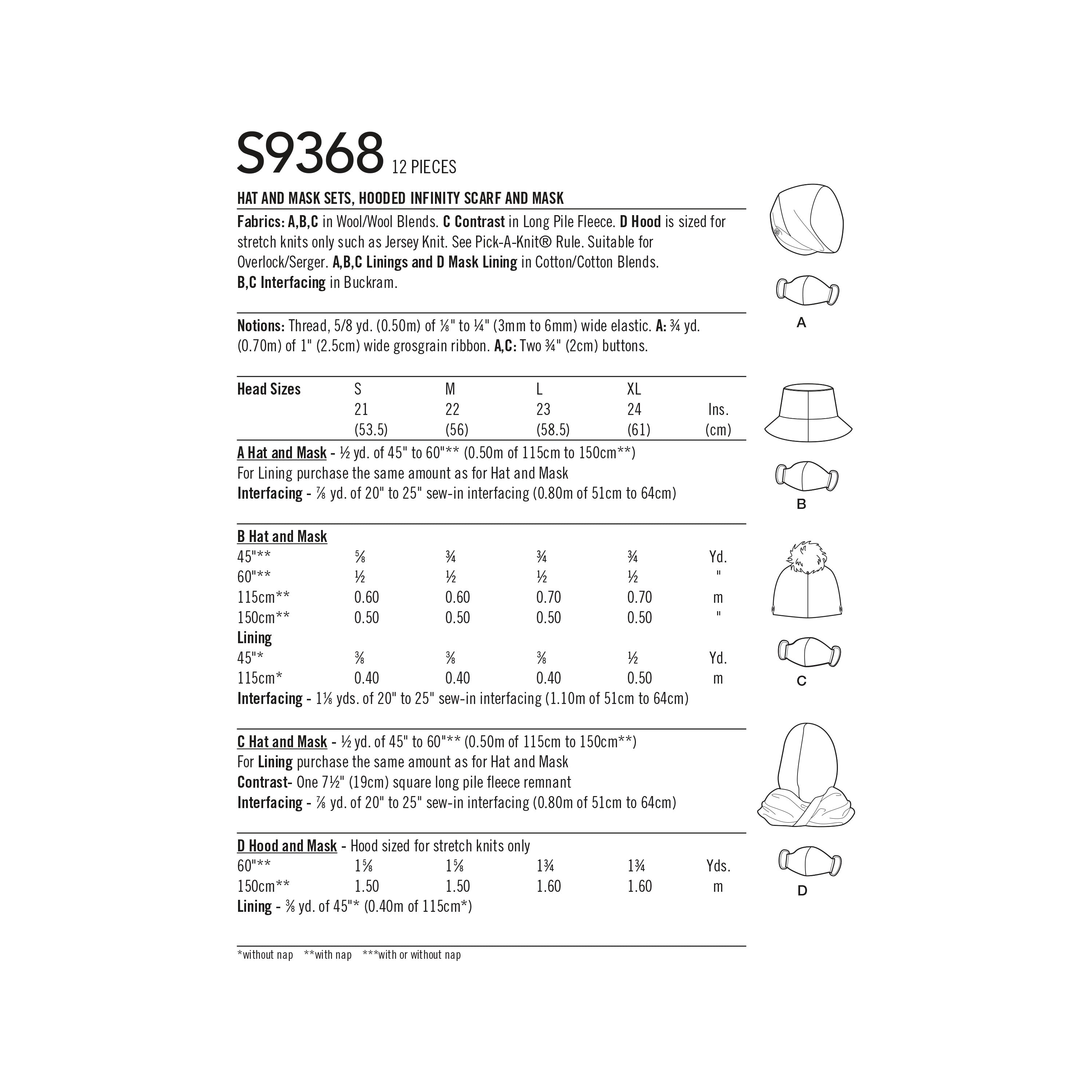 Simplicity Sewing Pattern S9368 - Hat and Mask Sets, Hooded Infinity Scarf and Mask