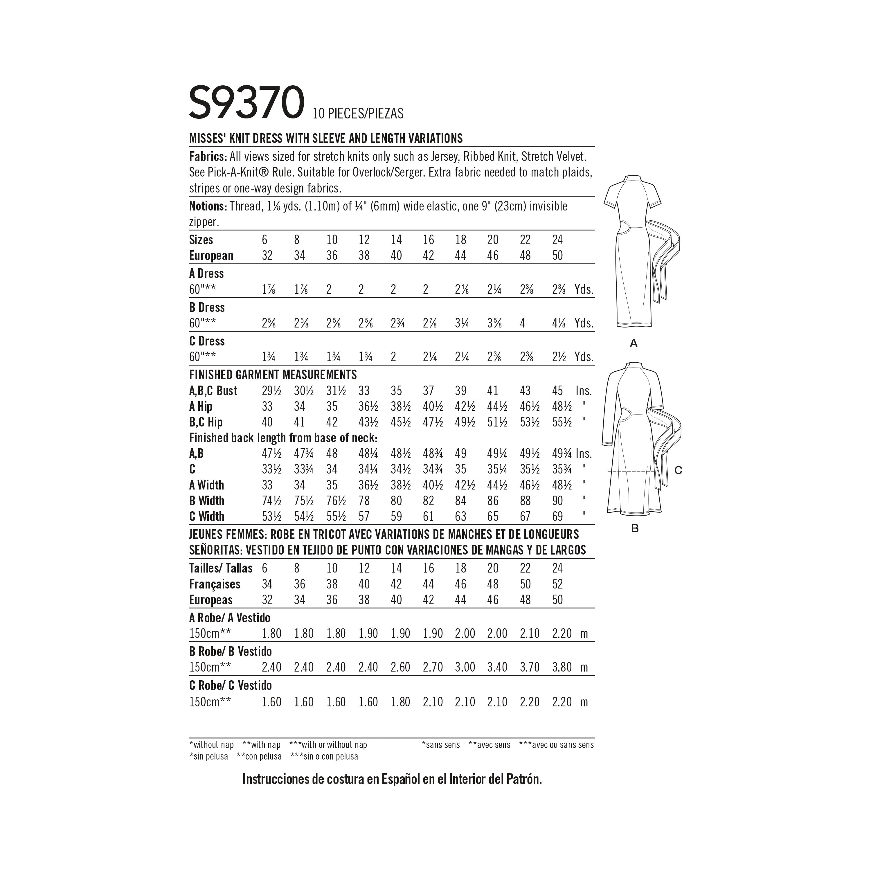 Simplicity Sewing Pattern S9370 - Misses' Knit Dress with Sleeve and Length Variations