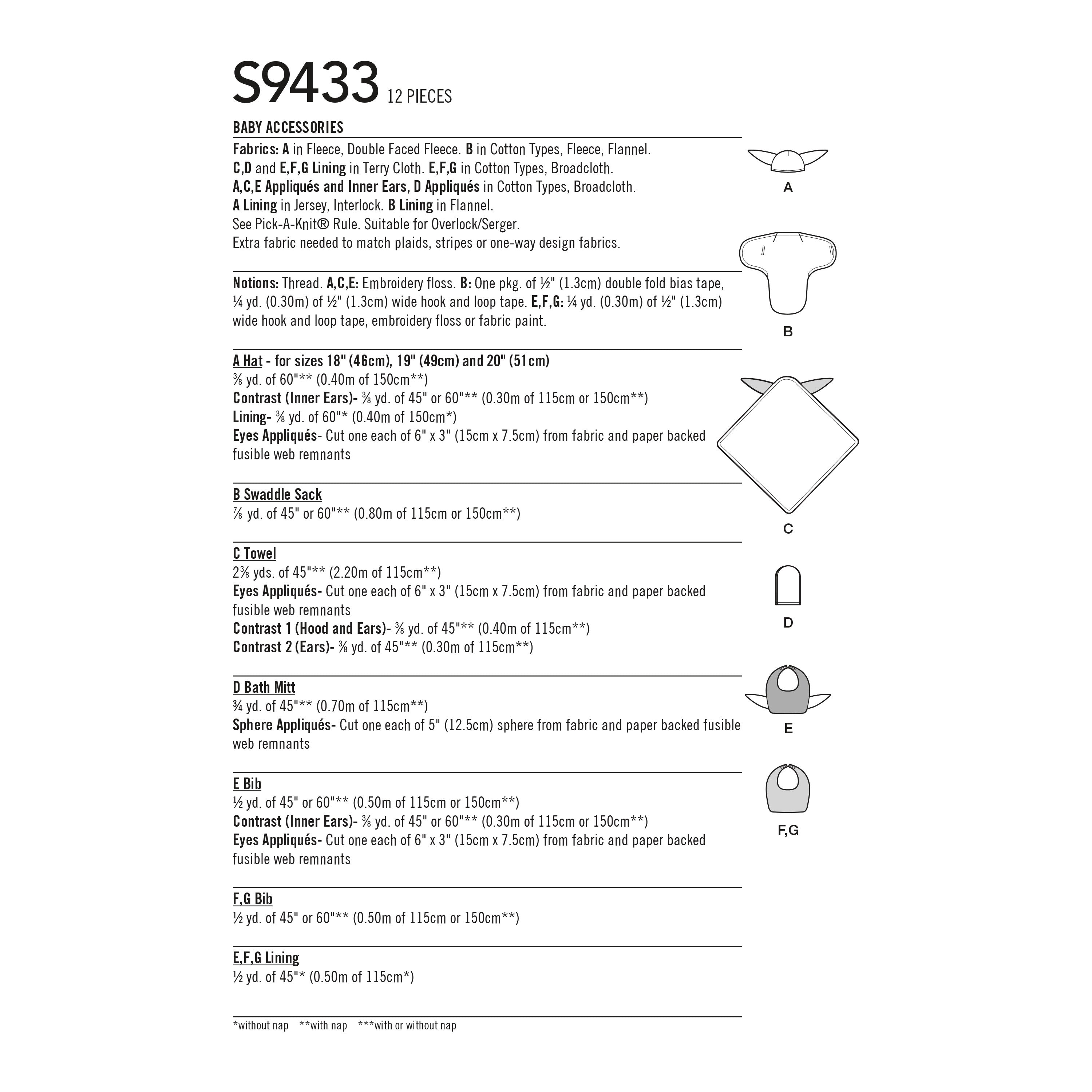 Simplicity Sewing Pattern S9433 - Baby Accessories