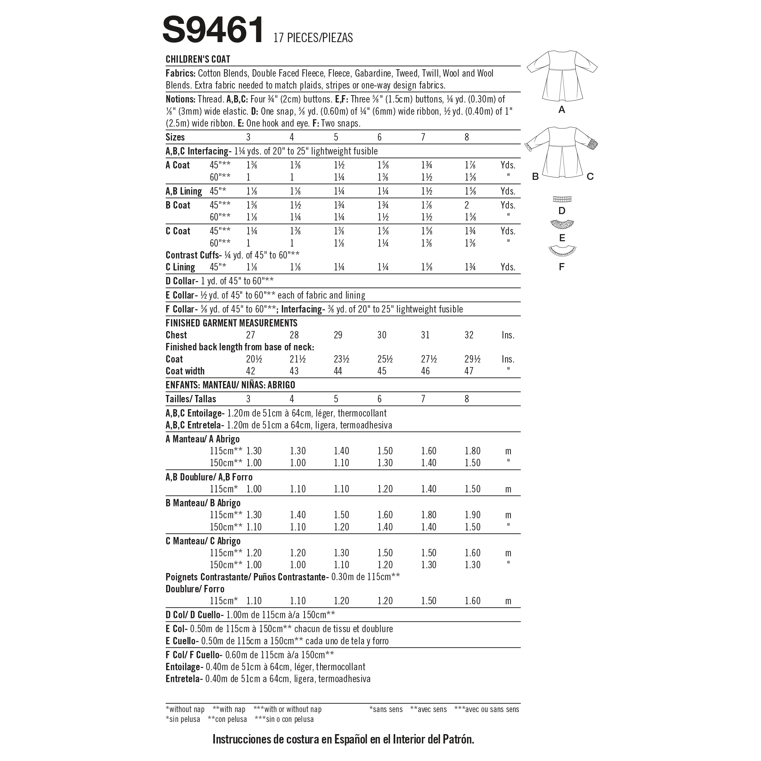 Simplicity Sewing Pattern S9461 - Children's Coat