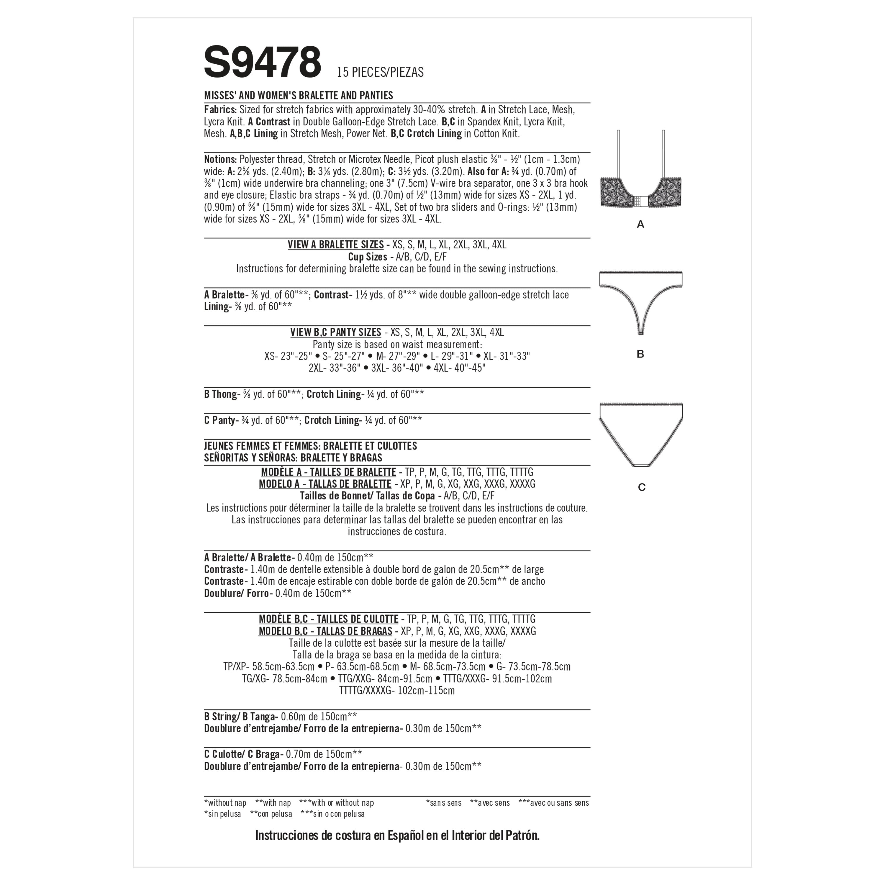 Simplicity Sewing Pattern S9478 - Misses' and Women's Bralette and Panties