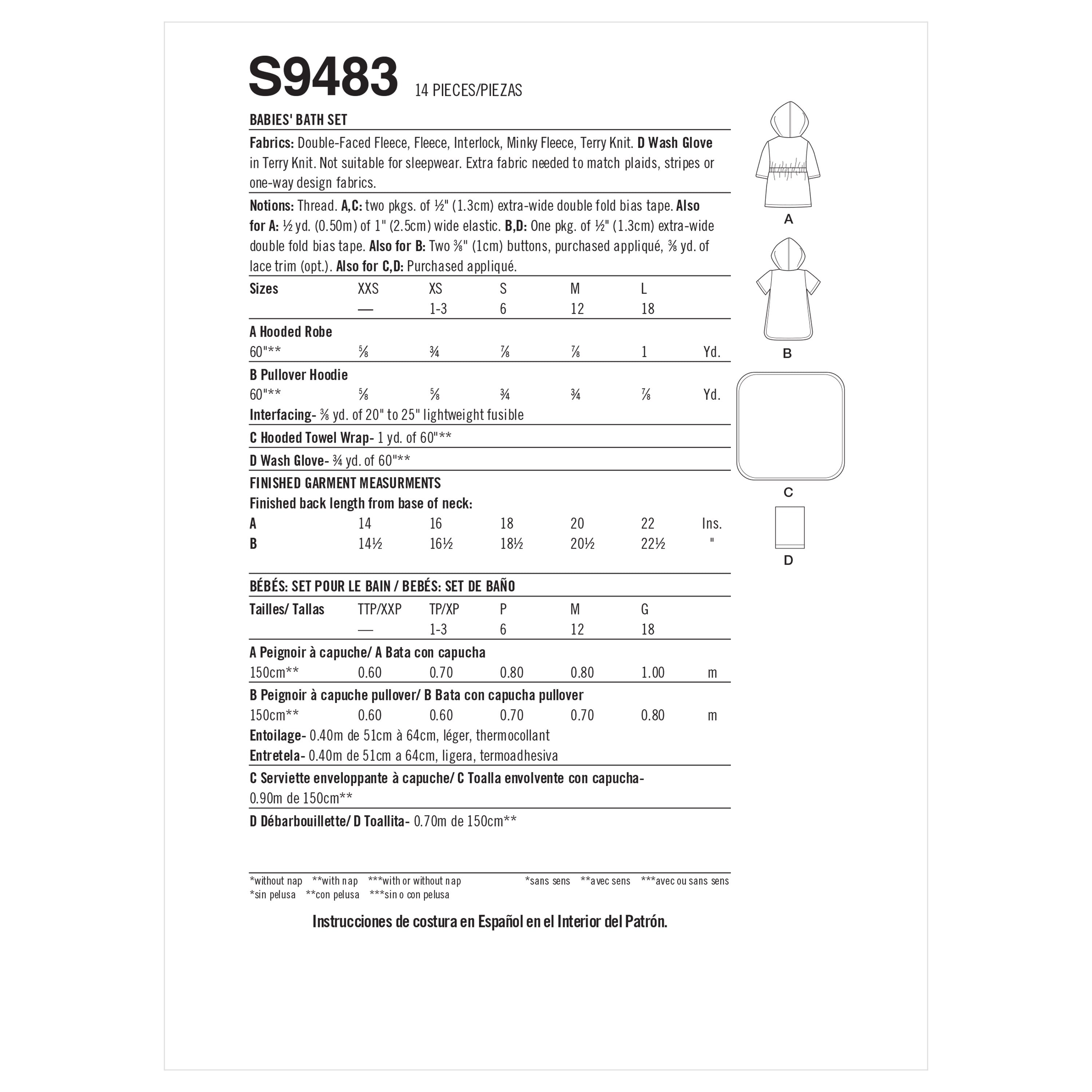 Simplicity Sewing Pattern S9483 - Babies' Bath Set