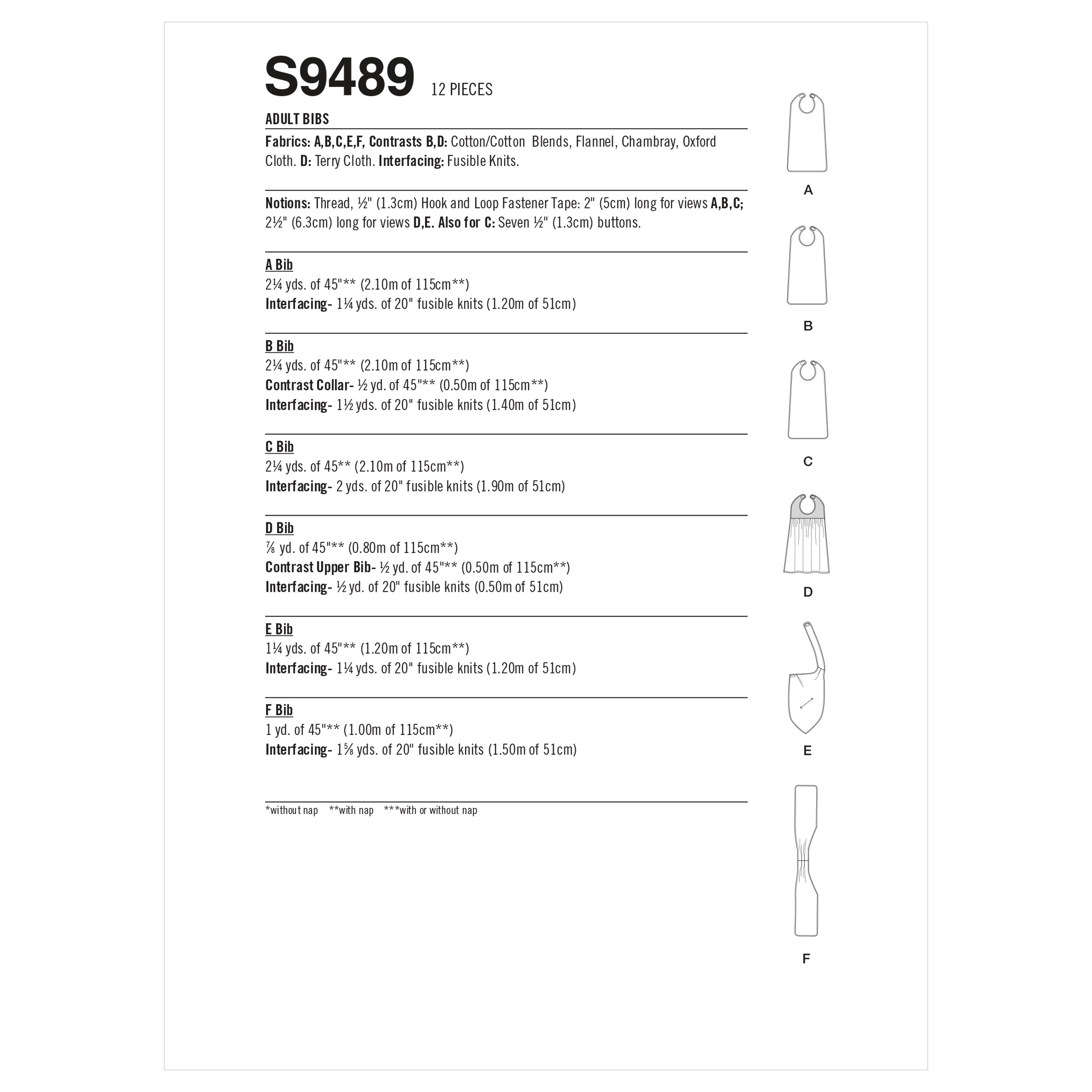 Simplicity Sewing Pattern S9489 - Adult Bibs