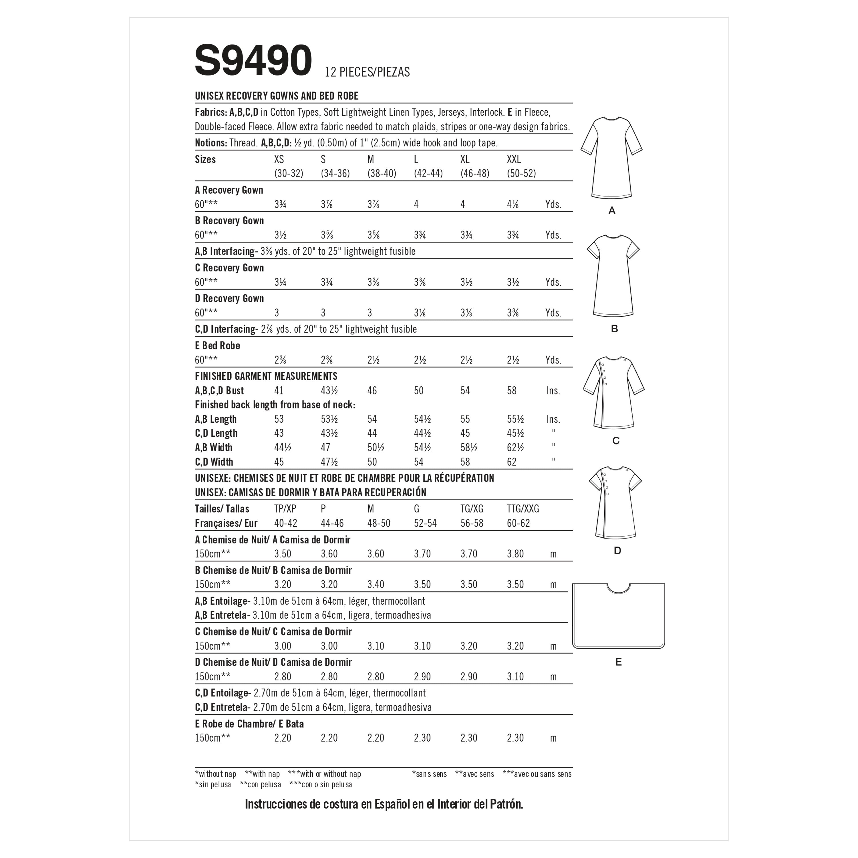 Simplicity Sewing Pattern S9490 - Unisex Recovery Gowns and Bed Robe