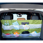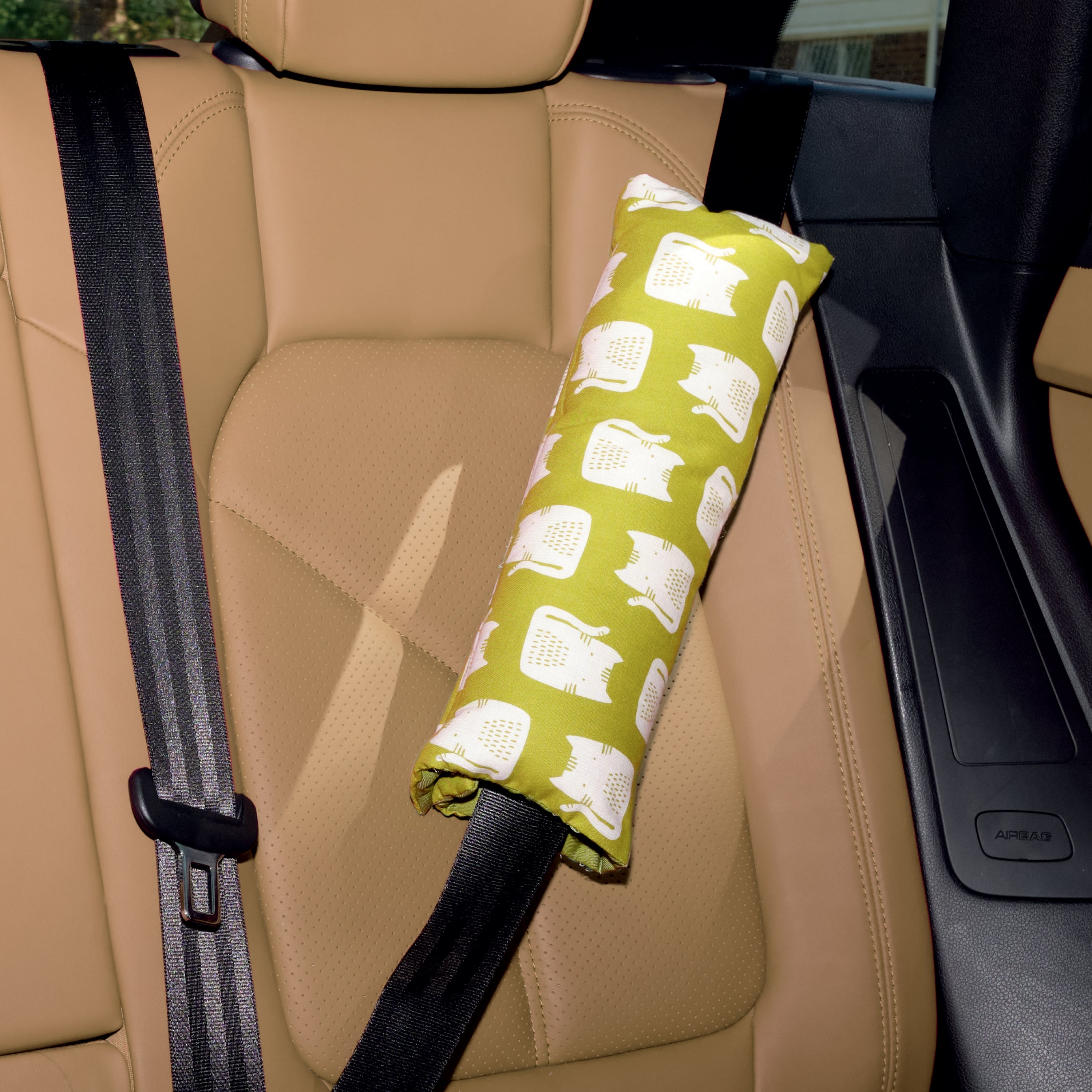 Keep road trips clutter-free with a backseat organizer 22"h x 44"w (56 x 112cm). Add a little comfort and organization with a front seat cushion with storage pocket 20" square (51cm), comfy padded seat belt cover 5.5"w x 14"h (14 x 35.5cm) and a headrest pillow 7"h x 10.5"w (18 x 27cm). Child's backseat body cushion provides head support 14"w x 22"h (35.5 x 56cm).