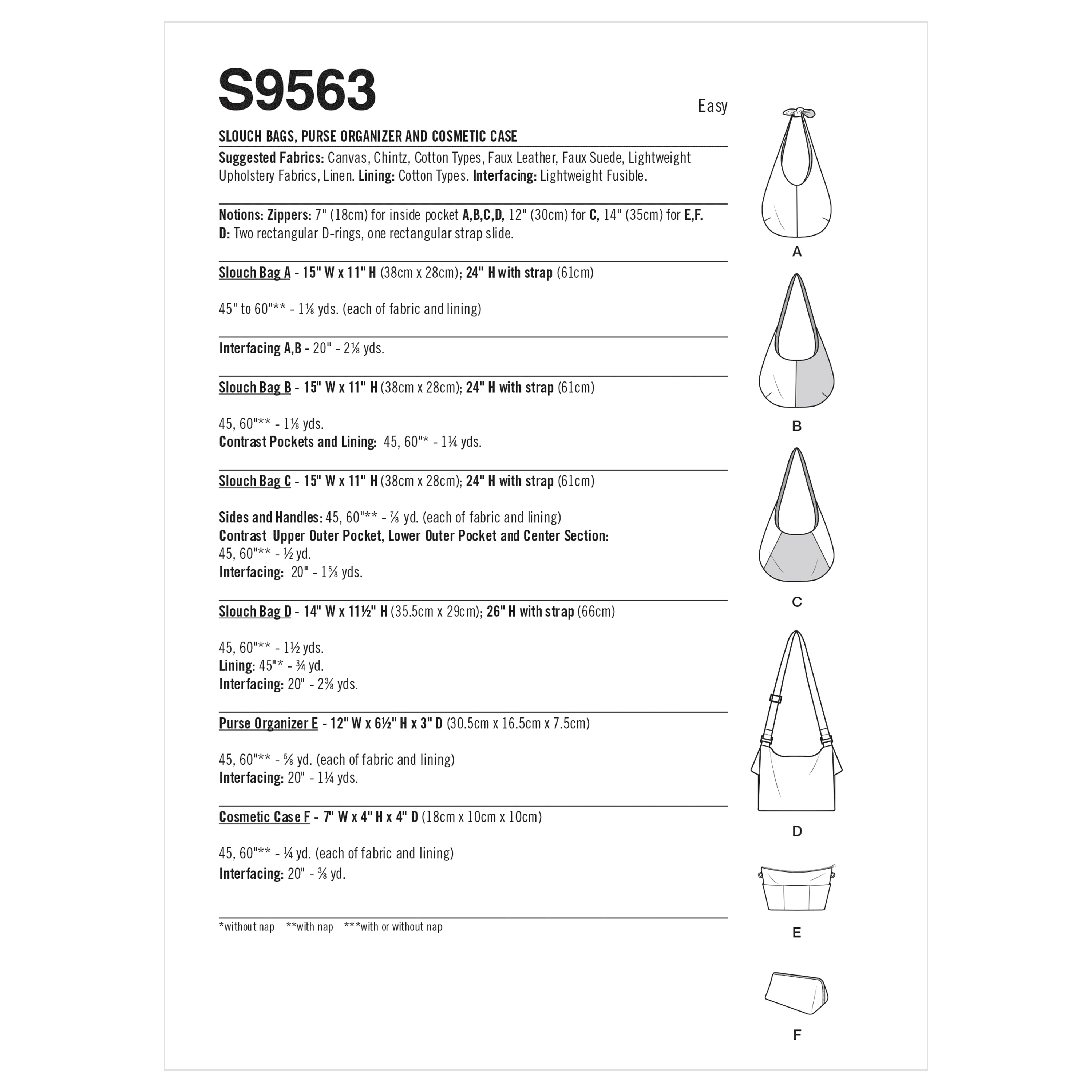 Simplicity Sewing Pattern S9563 - Slouch Bags, Purse Organizer and Cosmetic Case