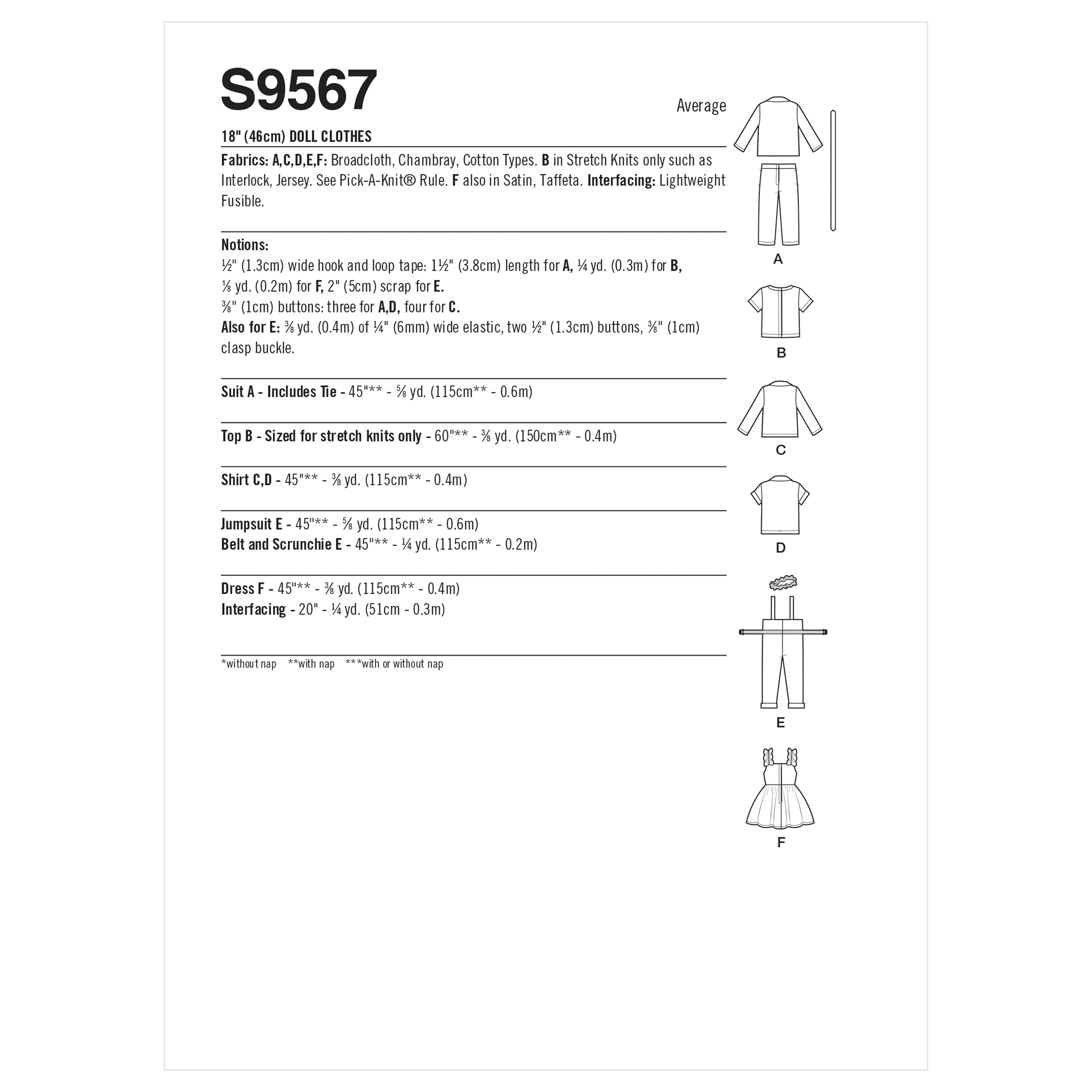Simplicity Sewing Pattern S9567 - 18" Doll Clothes