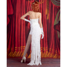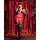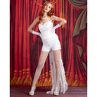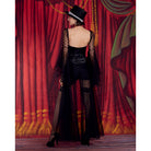 Boned corset has separating back zipper. Create different looks by adding a collar and sleeves. Hook decorations to thread loops on the back of the corset. Boy shorts have elastic waistband. Skirt is in two lengths.