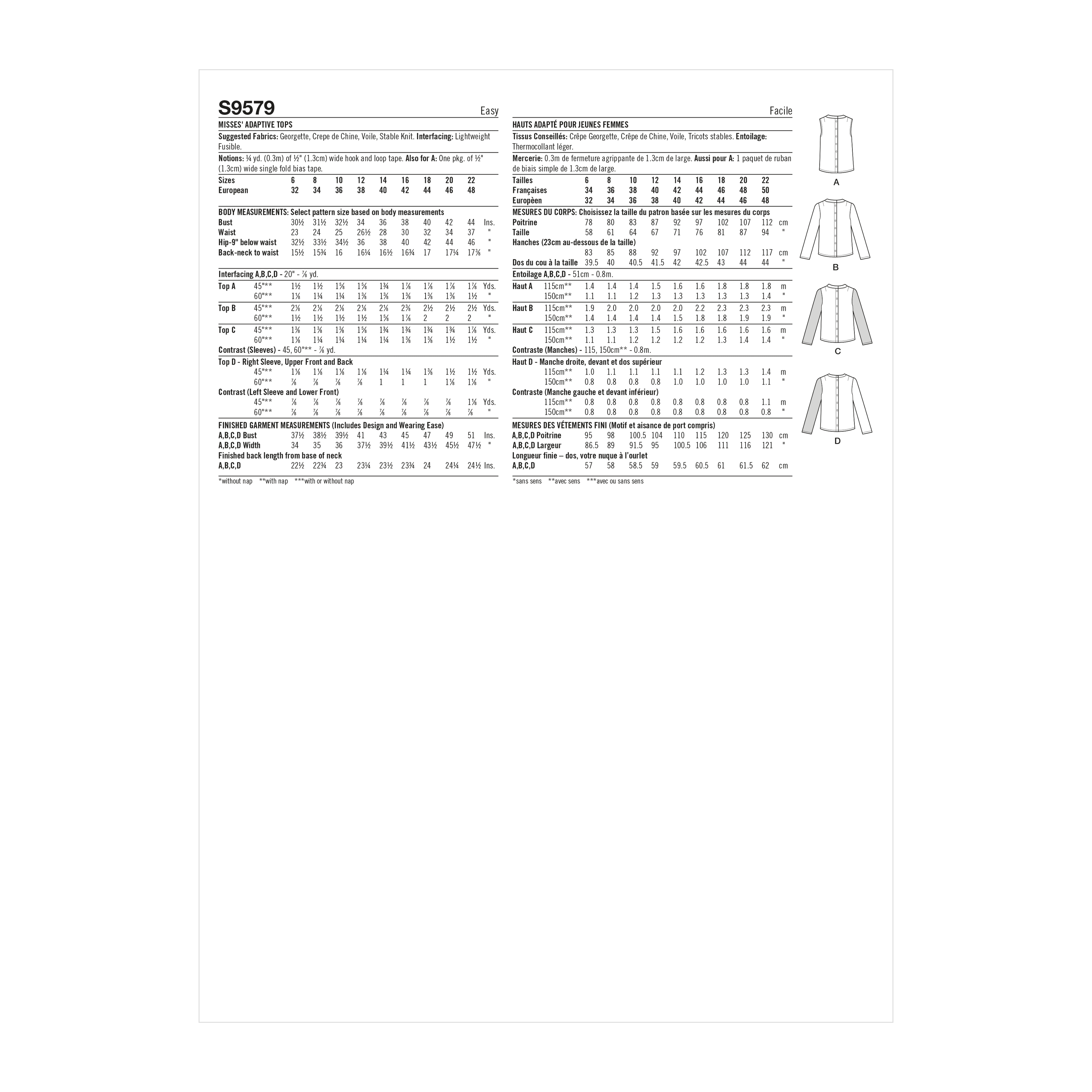 Simplicity Sewing Pattern S9579 - Misses' Adaptive Tops