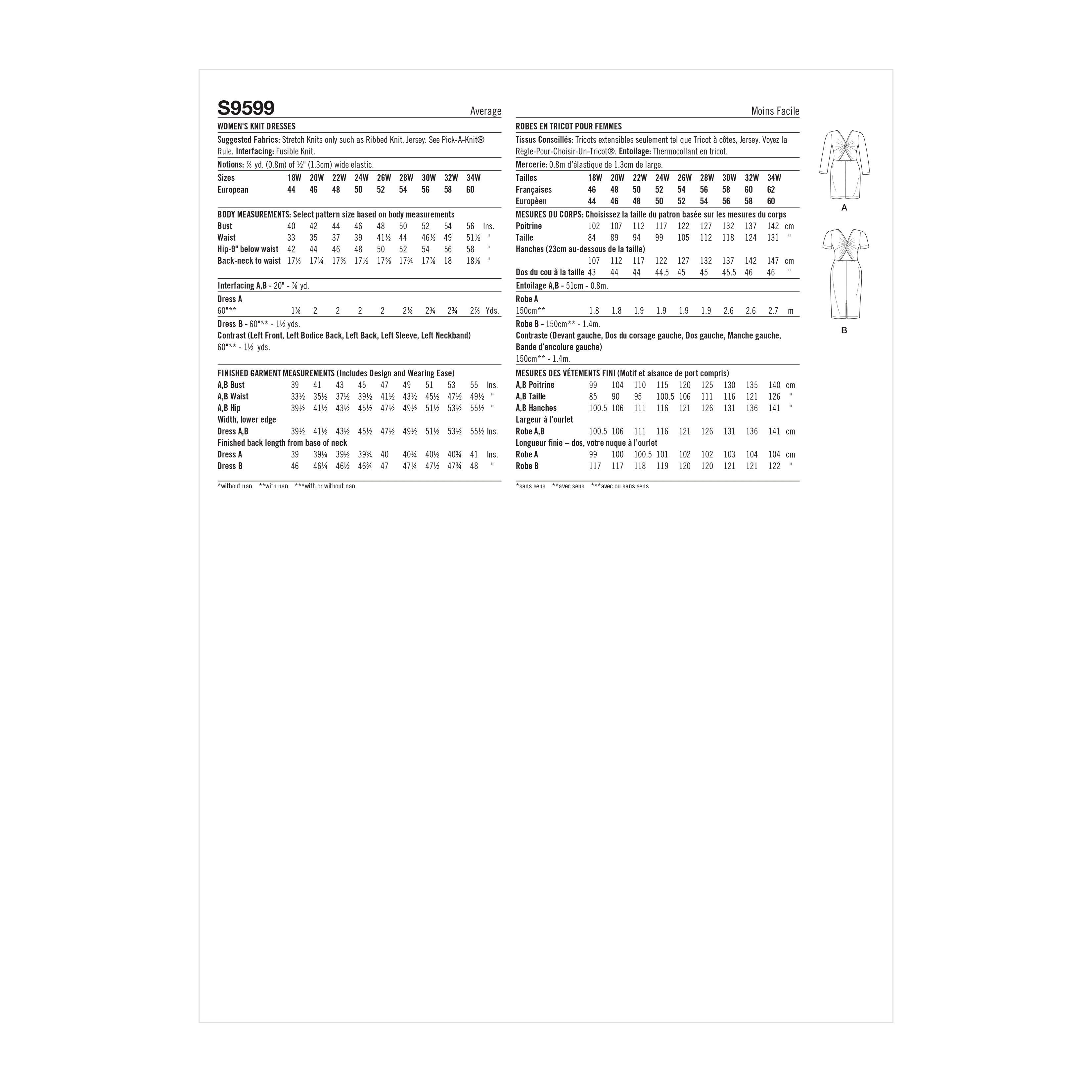 Simplicity Sewing Pattern S9599 - Women's Knit Dresses by Mimi G