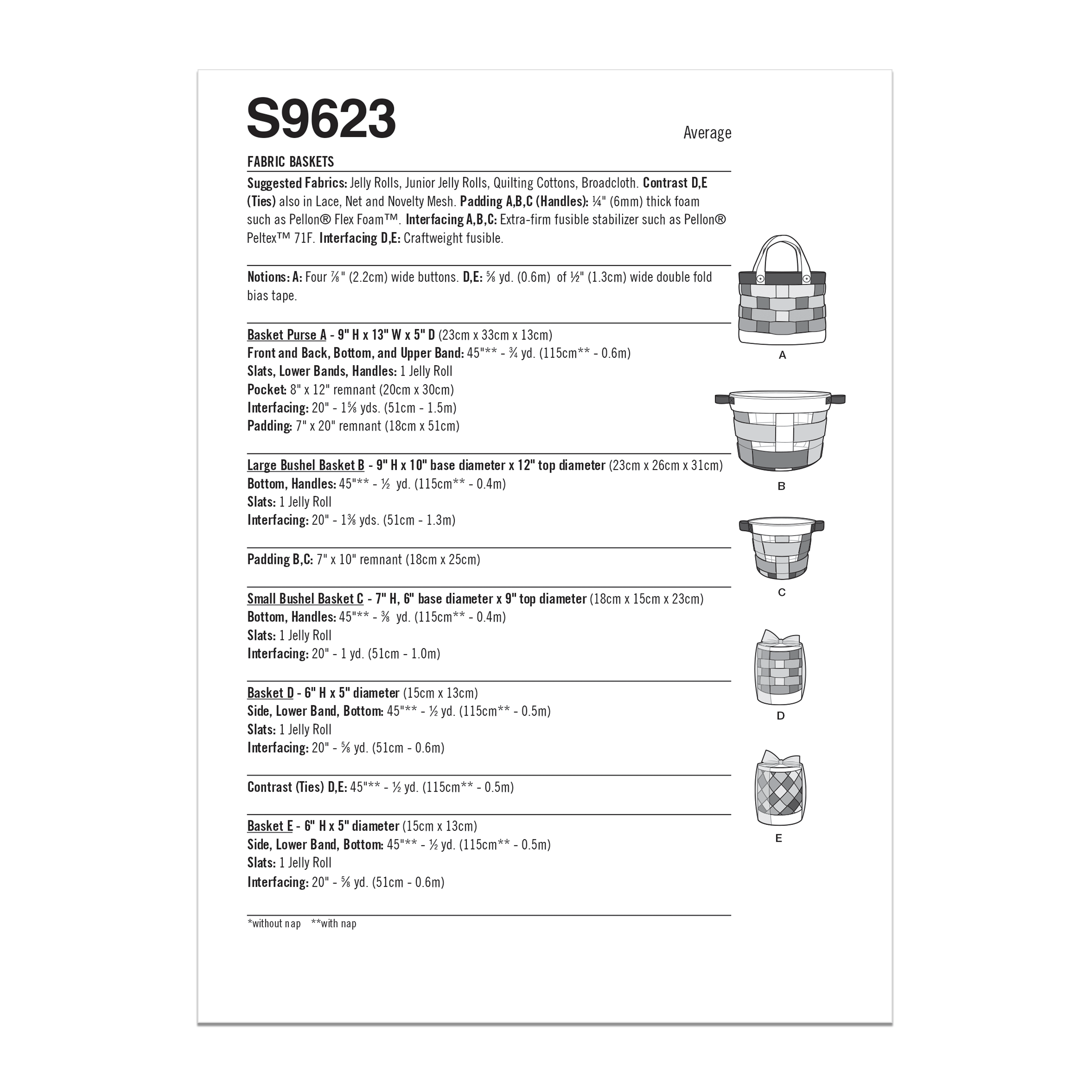 Simplicity Sewing Pattern S9623 - Fabric Baskets by Carla Reiss Design