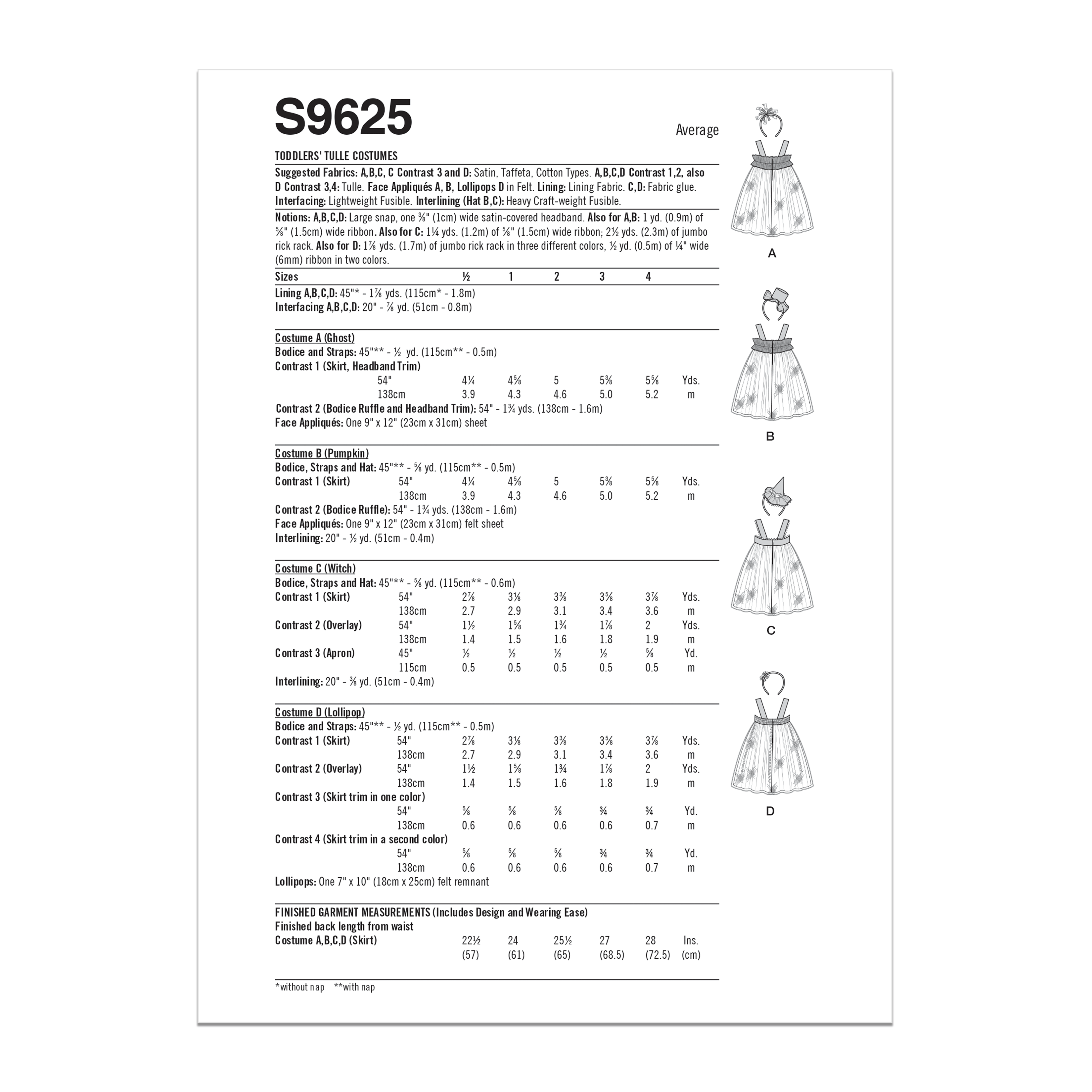 Simplicity Sewing Pattern S9625 - Toddlers' Tulle Costumes by Andrea Schewe Designs