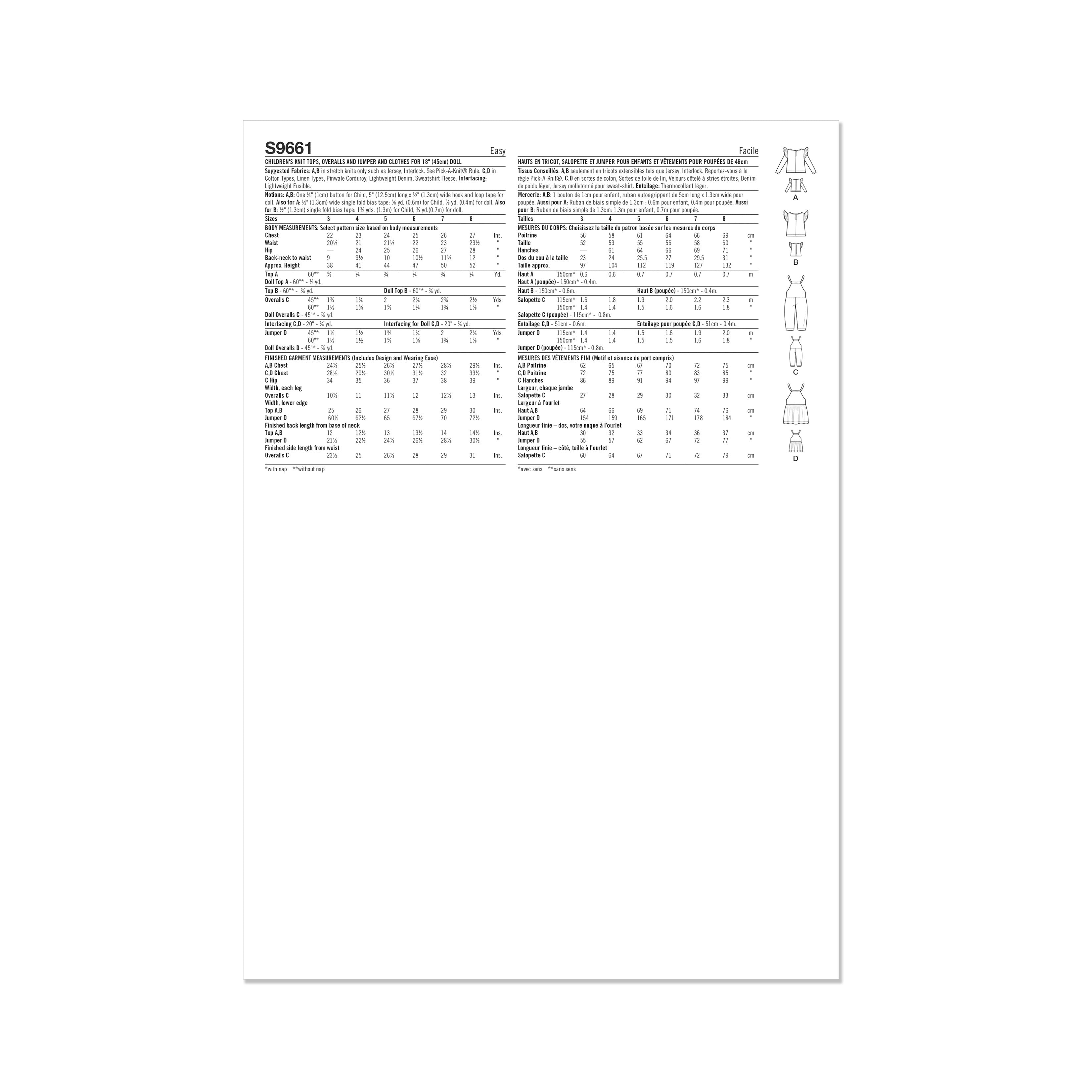Simplicity Sewing Pattern S9661 - Children's Knit Tops, Overalls, and Jumper and Doll Clothes for 18" Doll