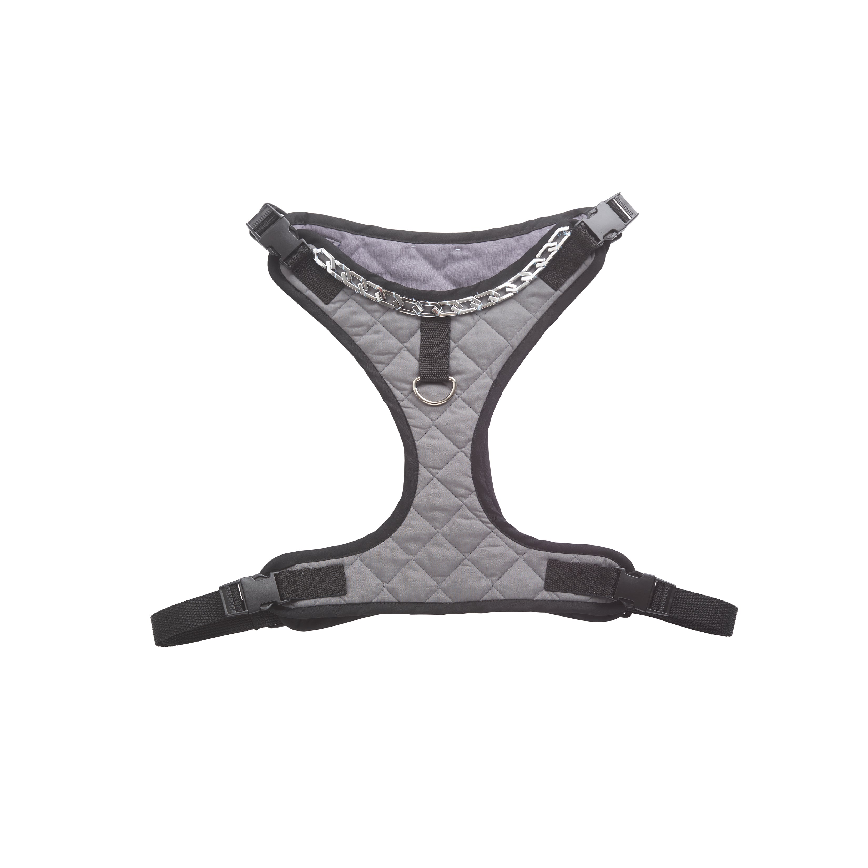 Lined, lightly padded harnesses with parachute clip closures, D-ring for leash attachment and edges finished with purchased binding have adjustable webbing straps at chest for a comfortable fit. 2" (5cm) wide leash has snap hook, bound edges and looped handle. Harnesses and leashes have chain, decorative braid and fabric flower trim options. See envelope for more information.