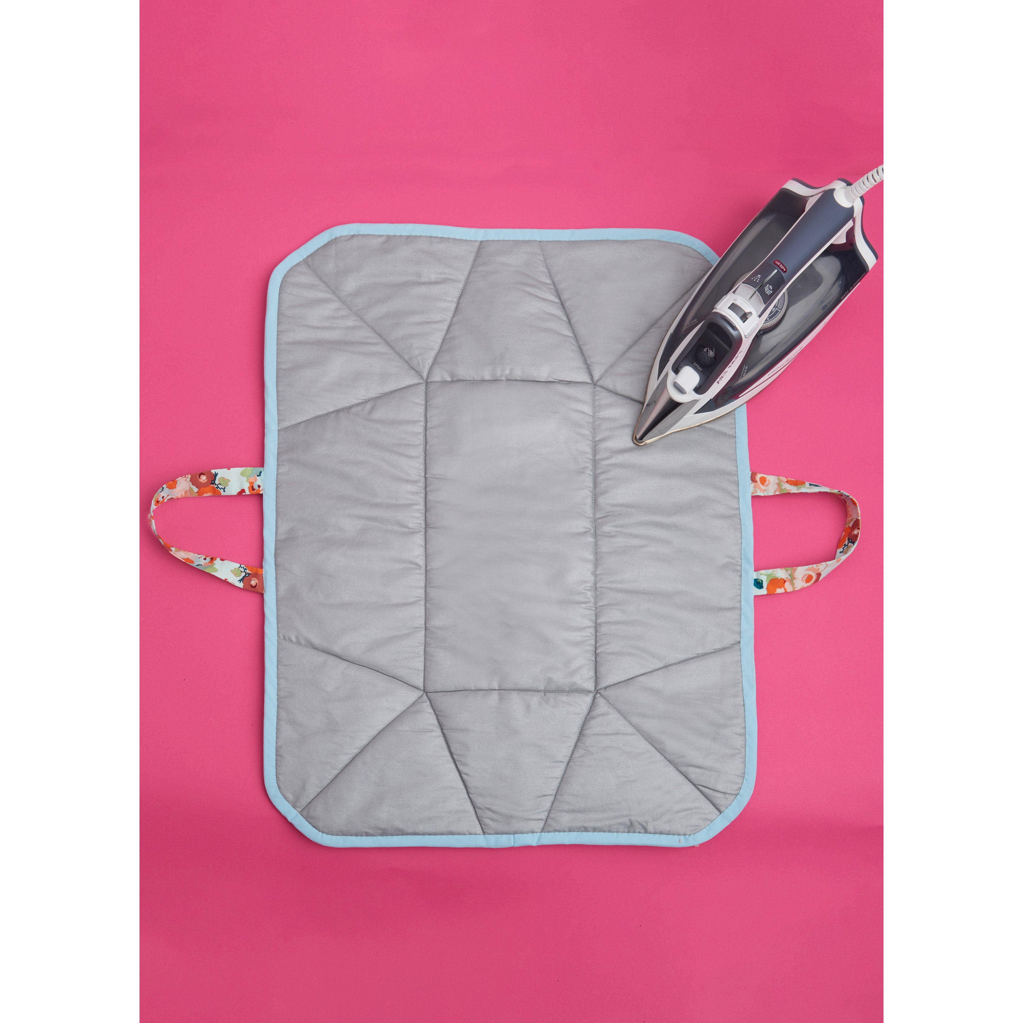 Tote, apron, basket, organizing bins, ironing mat/caddy and scissor cases. Tote has inside and outside pockets. Apron has two rows of pockets. Fold and roll apron into storage for notions. Small bins hold notions and fit into the portable basket. Iron caddy opens into an ironing mat. Scissor cases hold up to three pair of scissors and magnifying eye glasses. See back of envelope for more information.
