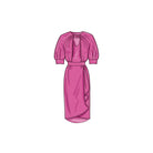 Dress features knotted draped bodice overlay, cutout neckline, waistband at skirt encased into side seam, and back zipper. View A is a long dress with pleated puff sleeves and sleeve bands. Views B and C have flutter sleeves. View C is a mini dress. Sales from this pattern help support American Sewing Guild dedicated to Advancing Sewing as an Art and Life Skill. Learn more at www.asg.org.
