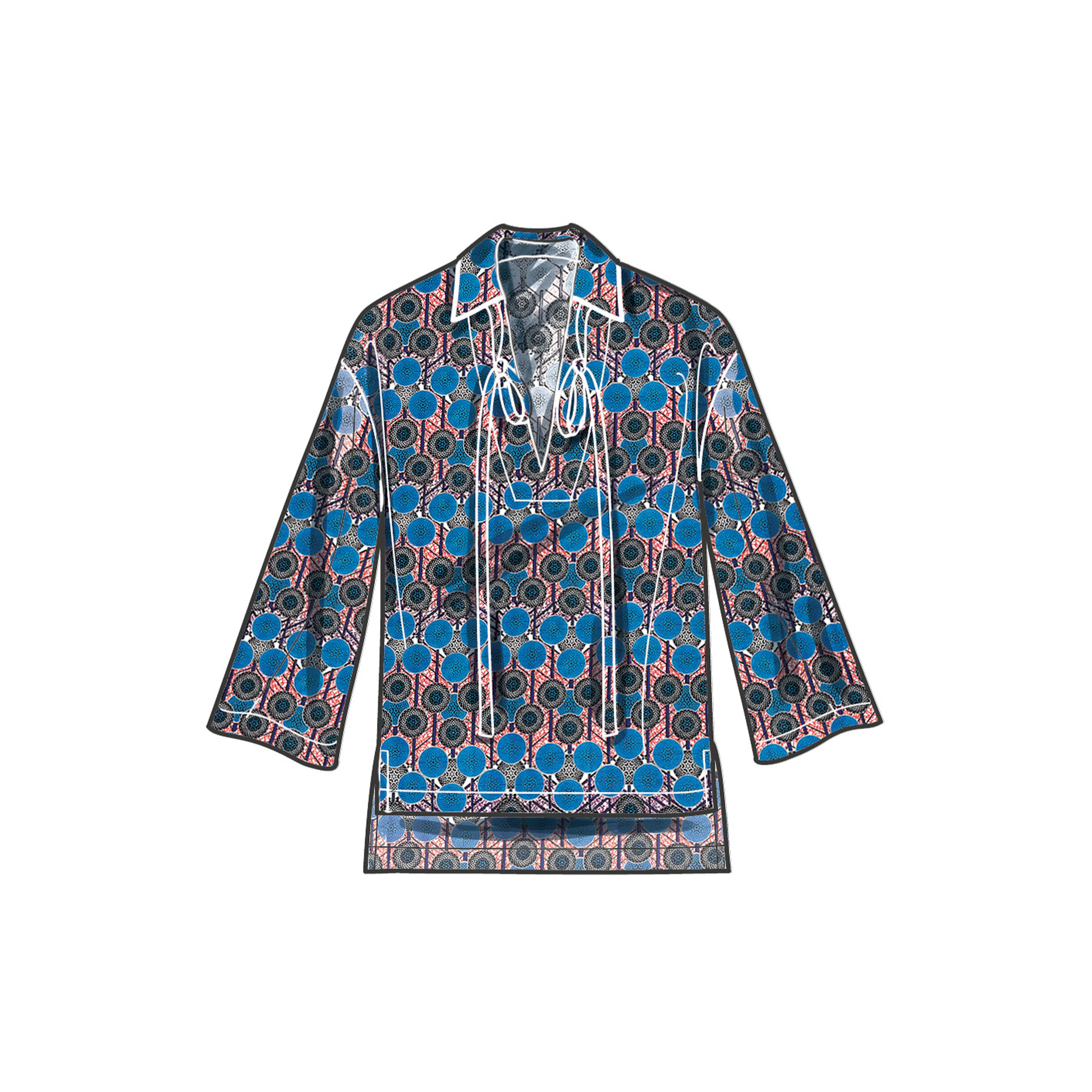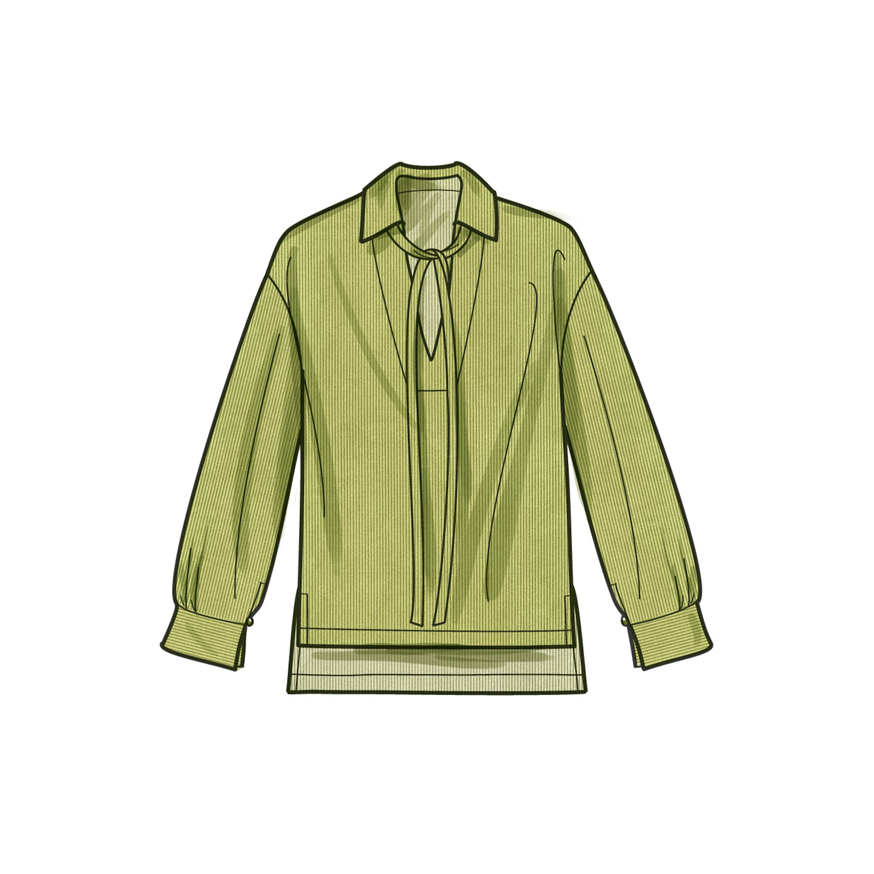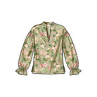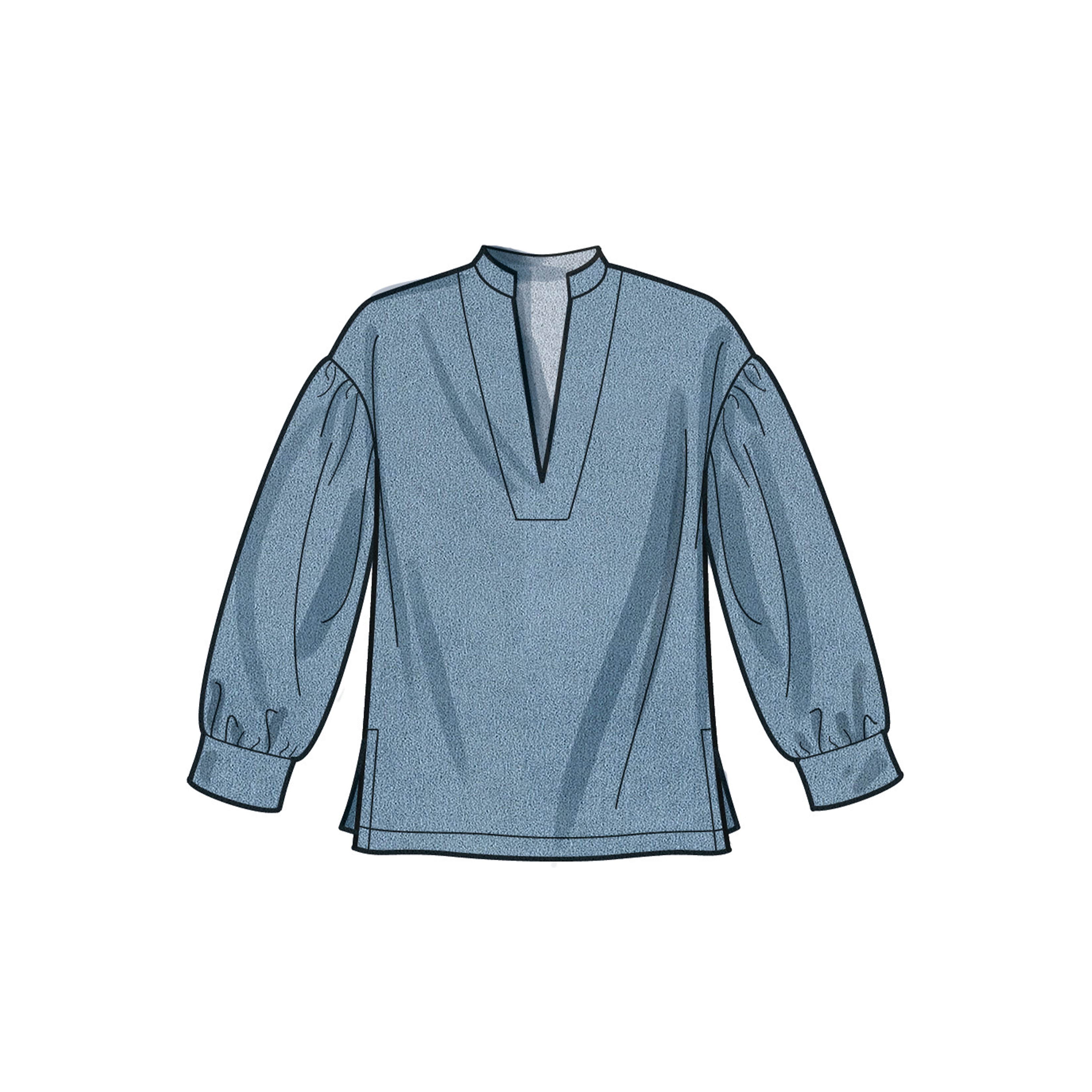 Trendy pull-over tops can dress up any outfit! View A and View B have pointed collar and shirttail hem with different sleeve options. View C and View D have stand collar and puff sleeves. View C has elastic at sleeves.