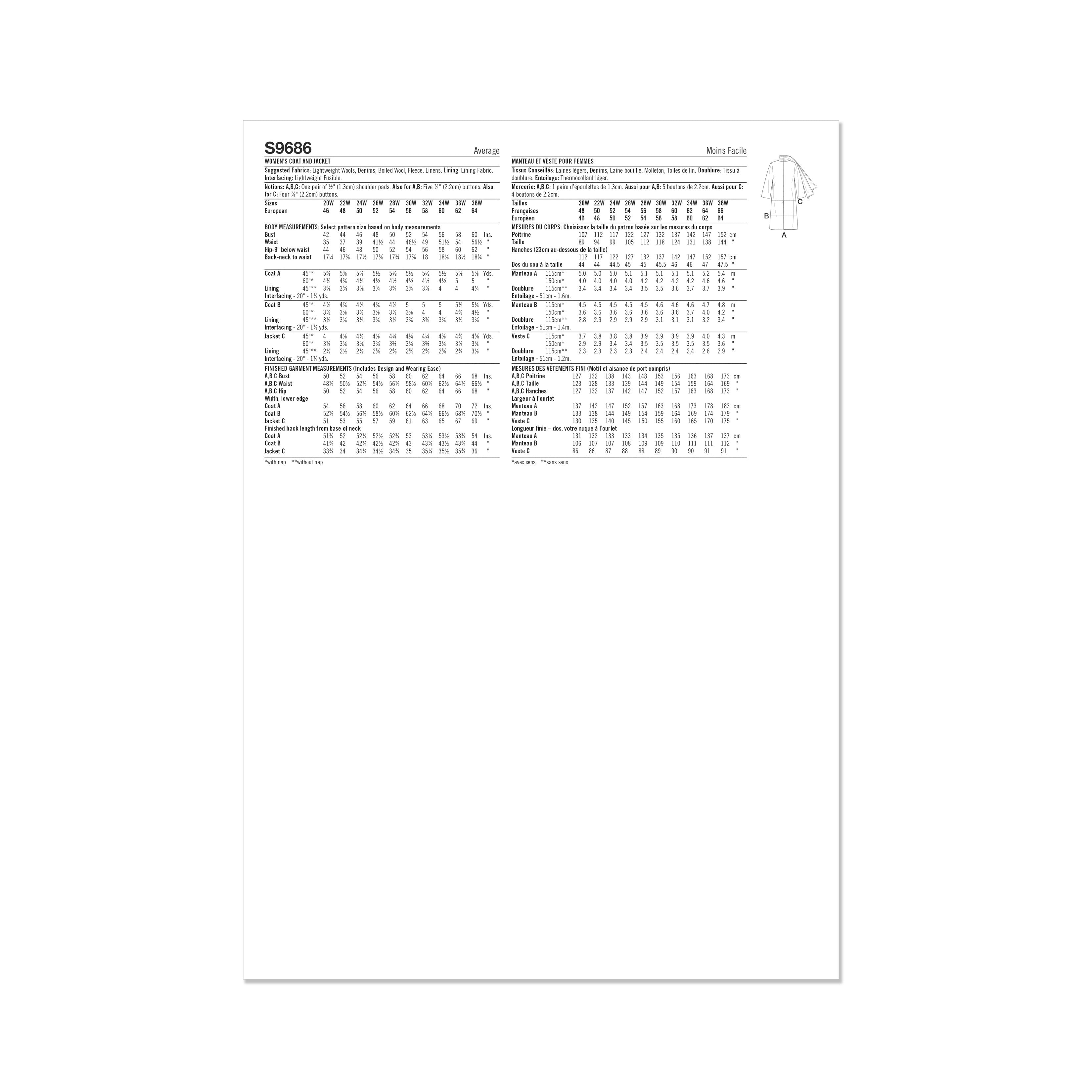 Simplicity Sewing Pattern S9686 - Womens' Coat and Jacket