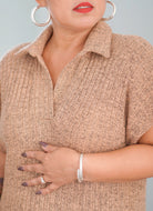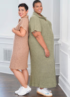 Simple but never plain! This collar knit dress in two lengths has dropped shoulders, short sleeves with top stitching at sleeve hem and back vent for View B dress.