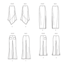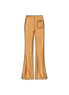 These easy-to-sew knit skirts and pants are must-have staples for your wardrobe. View A is an asymmetrical midi skirt. View B is a long skirt with a side slit. Views C and D are flare pants with hip patch pockets. Pants are available in two lengths. 1 Hour sewing machine time only.