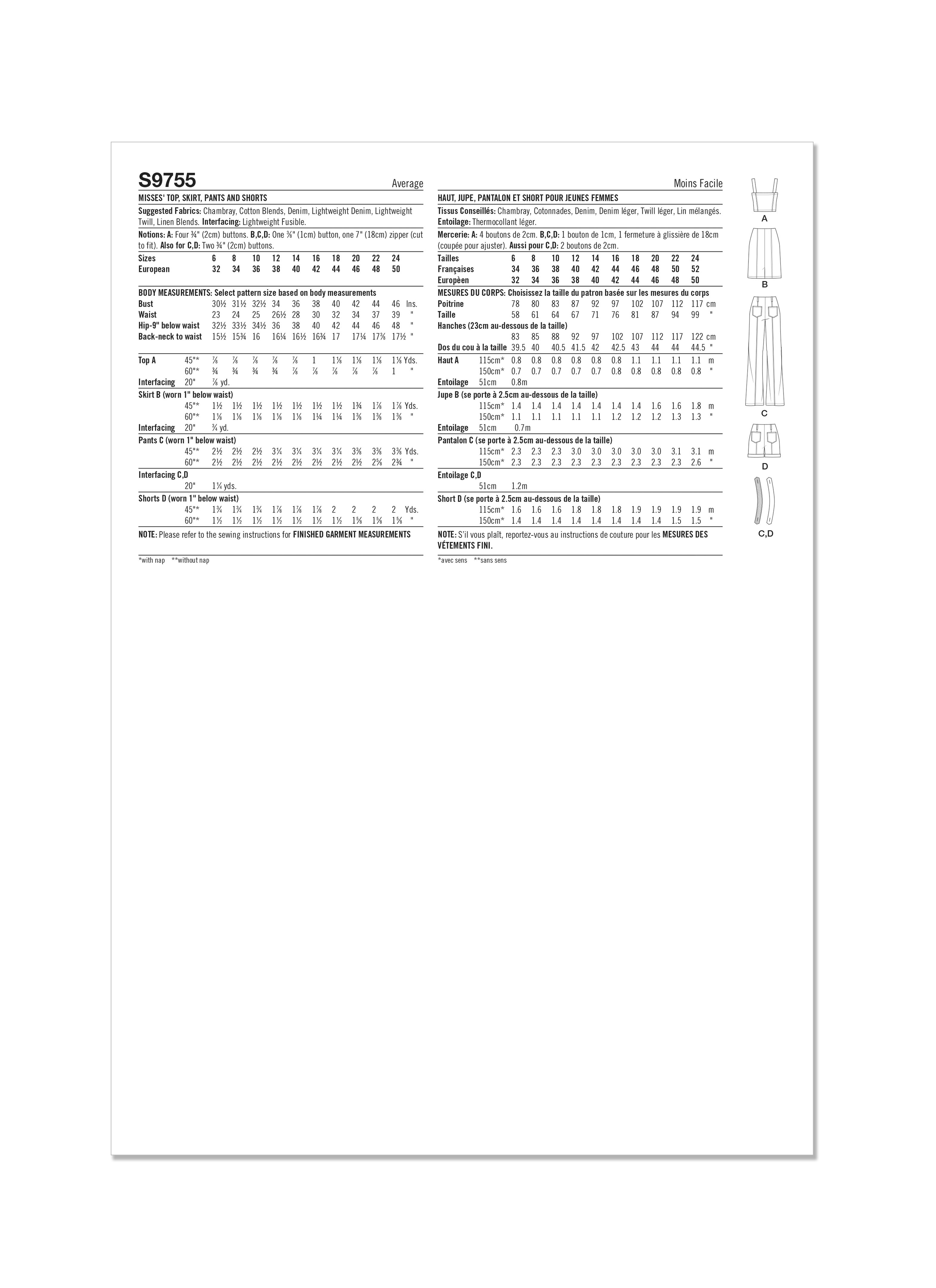 Simplicity Sewing Pattern S9755 - Misses' Top, Skirt, Pants and Shorts