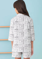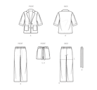 These versatile wardrobe pieces are for children sizes 3 to 6 and girls sizes 7 to 14. Jacket has front button closure, notched collar, three-quarter sleeves with cuffs, and patch pockets. Pants and shorts have waistband, side seam pockets and a tie belt.