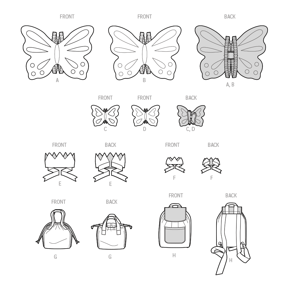 Simplicity Sewing Pattern S9765 - Children's Wings, Crown, Tote, Backpack and Wings and Crown for Doll or Plush Animals