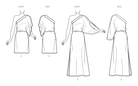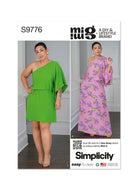 Easy-to-sew, one shoulder dress in mini and maxi lengths with sleeve options, side seam pockets and elasticized waist. Maxi length has side slit.