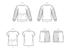 Create these easy-to-sew Girls' and Boys sweatshirts and shorts for sizes 7-14. Pattern includes long and short sleeve sweatshirts and contrast shorts with elastic at waist.
