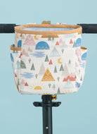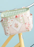 Easy-to-sew baskets, bags and panniers attaches to bicycle or scooter with hook and loop fastener tape. Baskets and bags are strapped to bicycle and scooter handlebars and head tube. Panniers are strapped to the bicycle rear rack. All views have side pockets. Views B, D and E have contrast flap and secures with hook and loop tape. All accessories have headliner interfacing and cardboard at the back and bottom to help keep their shape. The top edge is finished with bias tape.