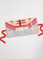 Charming pincushions created with purchased dolls have weighted plush skirts and ribbon, rick rack and lace trimmings. Trifold projects organizer and oval etui have corded edges, ribbon ties and pockets, tabs and rings to hold supplies and smaller needlework projects. See envelope for more information.