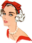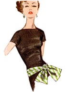 Vintage 1950's accessories. View 1 bias sash slips through a buckle and is adjusted to fit. View 2 is a notched shawl collar. View 3 lace trimmed dickey has a front & back, collar, button front closing and ties at side waistline. View 4 collar has a large under collar and a 2-piece collar. View 5 large collar is lace trimmed. View 6, 7 surplice front dickey has ties at side waistline. View 7 dickey in two colors. View 8 covered headband has matching double loop bow. Authentic Vintage Reproduction.