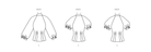 Vintage 1950's "Simple To Make" blouses boast smart raglan sleeves, three button closing in front, one button closing at sleeve bands and loop and button at neck edge. View 1 has convertible collar and three quarter sleeves. View 2, with convertible collar, has short sleeves. View 3, with short sleeves, is sparked with a tie collar. Authentic vintage reproduction includes additional size options and cutting layouts.
