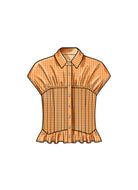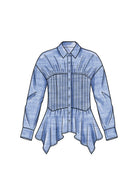 A sophisticated silhouette with corseted waist detail shirt has front button closure, collar or collar band options, long sleeves with cuffs or sleeveless and hemline variations. Views B has contrast bodice. Views A and C has pintucked bodice.