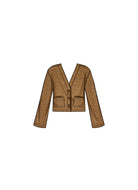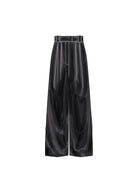 Pleated wide leg pants in two lengths have wide waistband and belt loops with top stitching, side pockets and a back welt pocket. Complete the look with a camisole and short three-button knit cardigan with V-neckline and patch pockets.