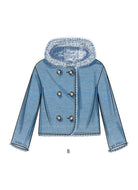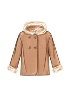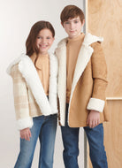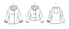 Hooded double breasted jacket in two lengths for boys and girls sized 7-14 with dropped shoulders is intended for double-faced fabrics only. View A has pockets.