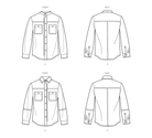 Misses' and Men's easy to sew shirt has banded or pointed collar, long sleeves with cuff, front and back yoke, and front patch pockets with button closure.